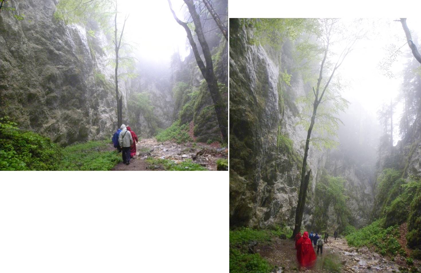 Pe potecă marcată cu punct roșu ce ocolește canionul …