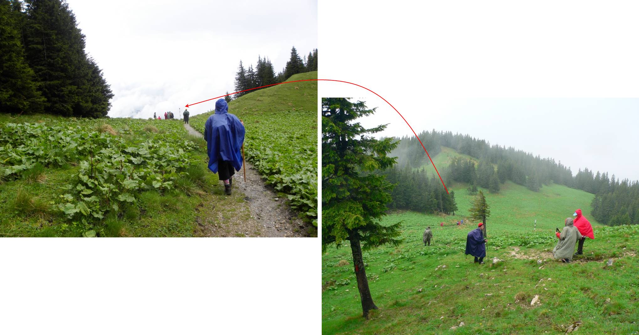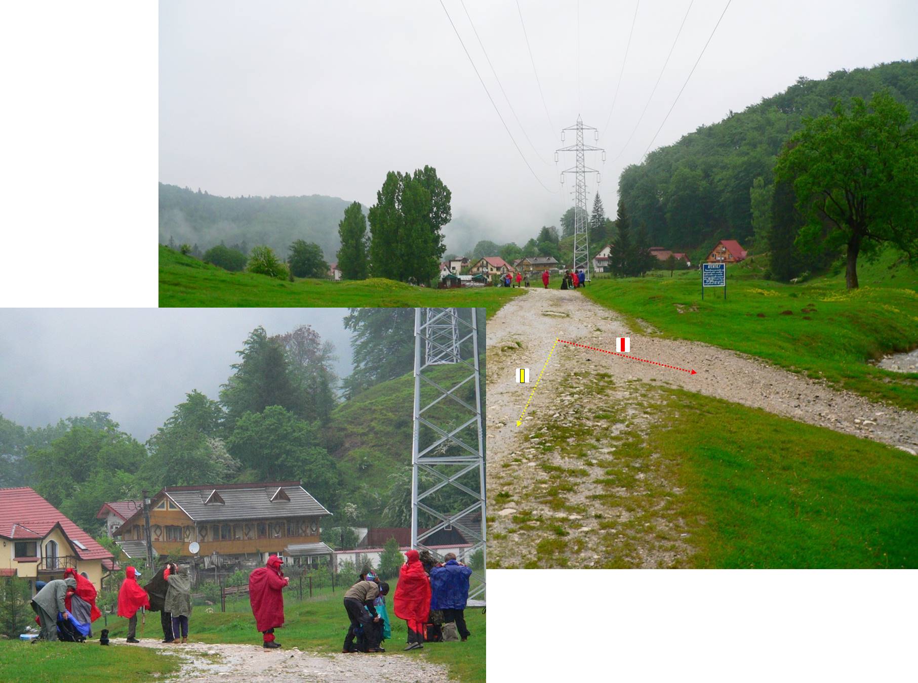 … până unde ni se arată, în dreapta, stâlpii marcați cu cruce roșie, spre care ne îndreptăm !
