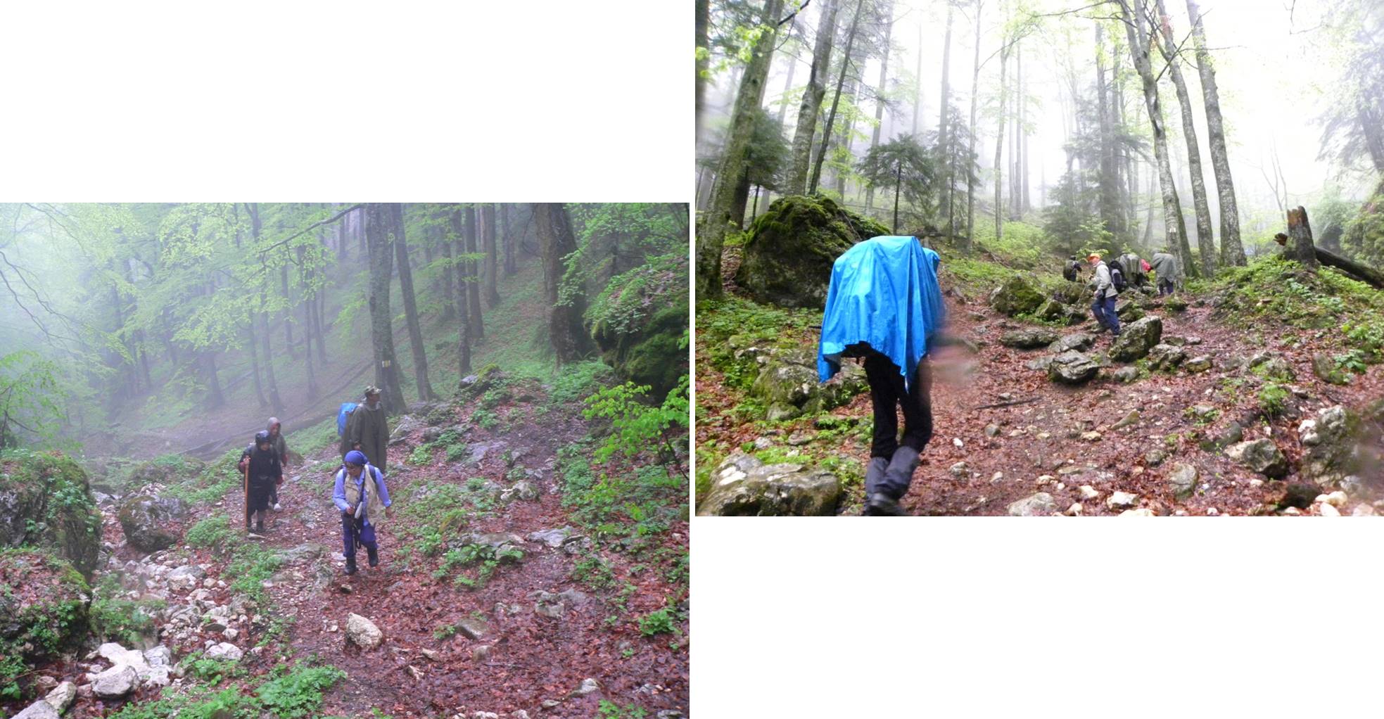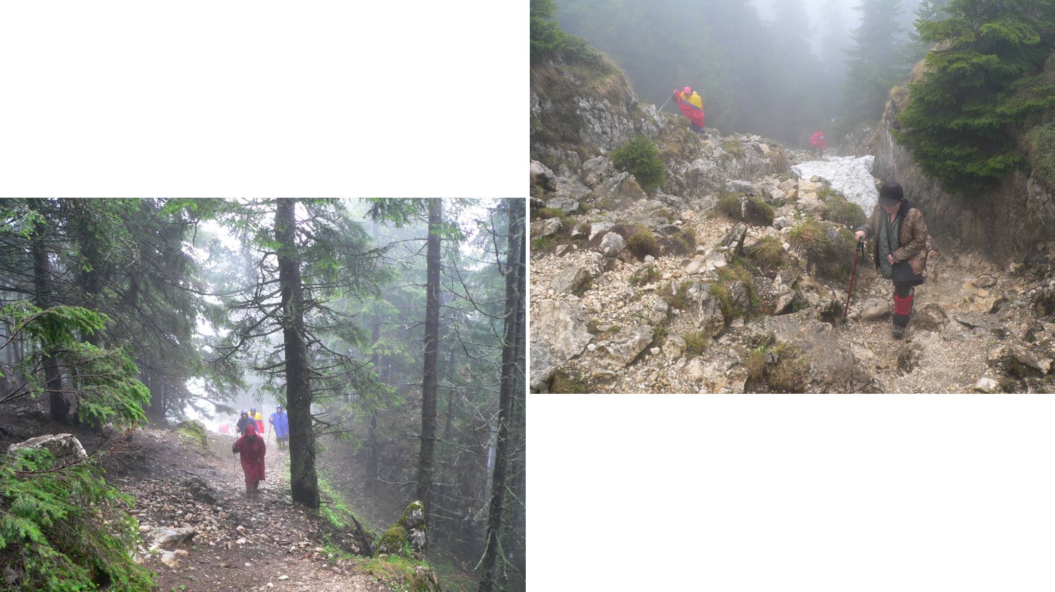 Din poienița pomenită mai sus suim printr-o zonă stâncoasă și cu mici trene de grohotiș, …
