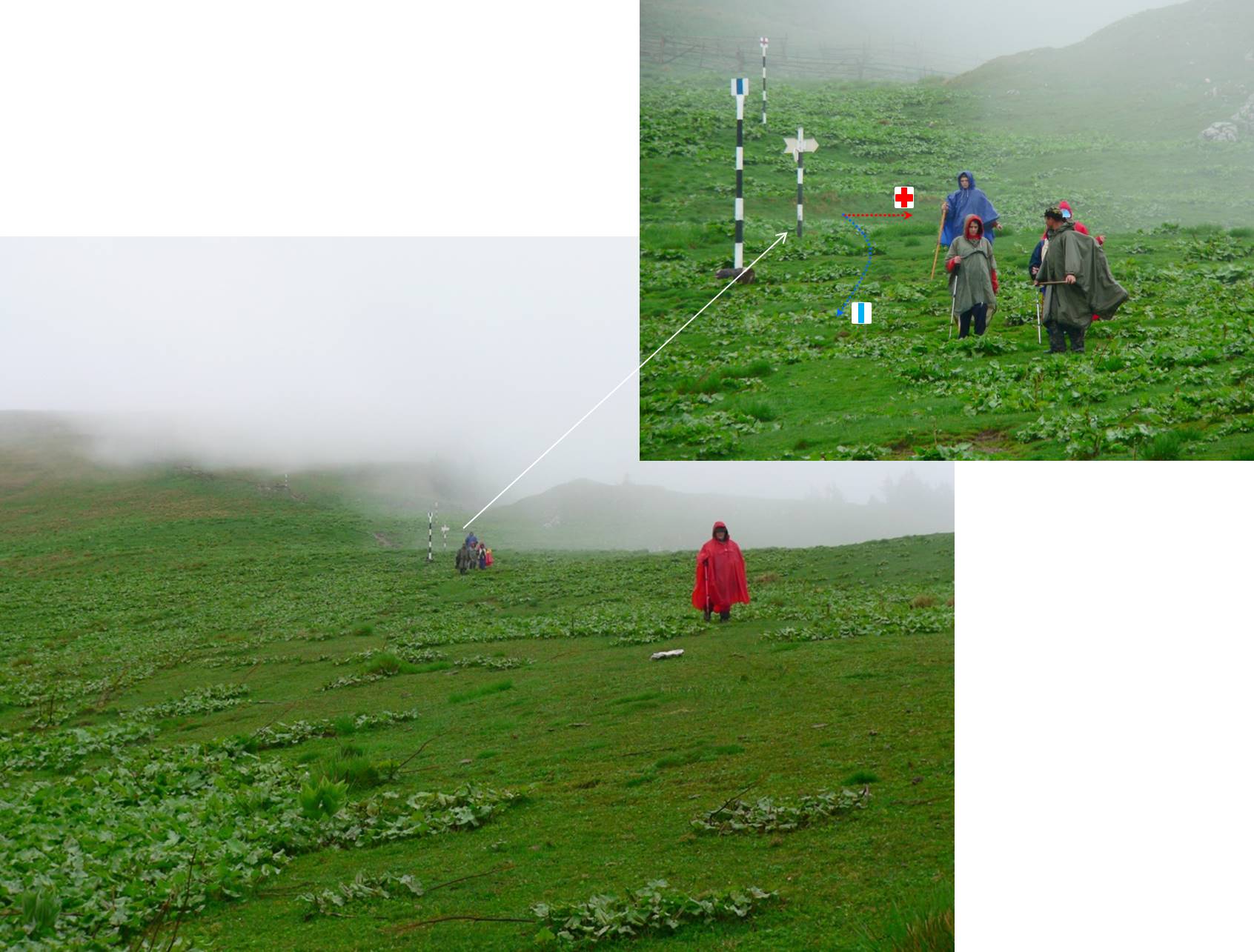 Ceața se trage pentru câteva clipe permițându-ne să zărim următorul obiectiv: Stâna Gălbeaza; …