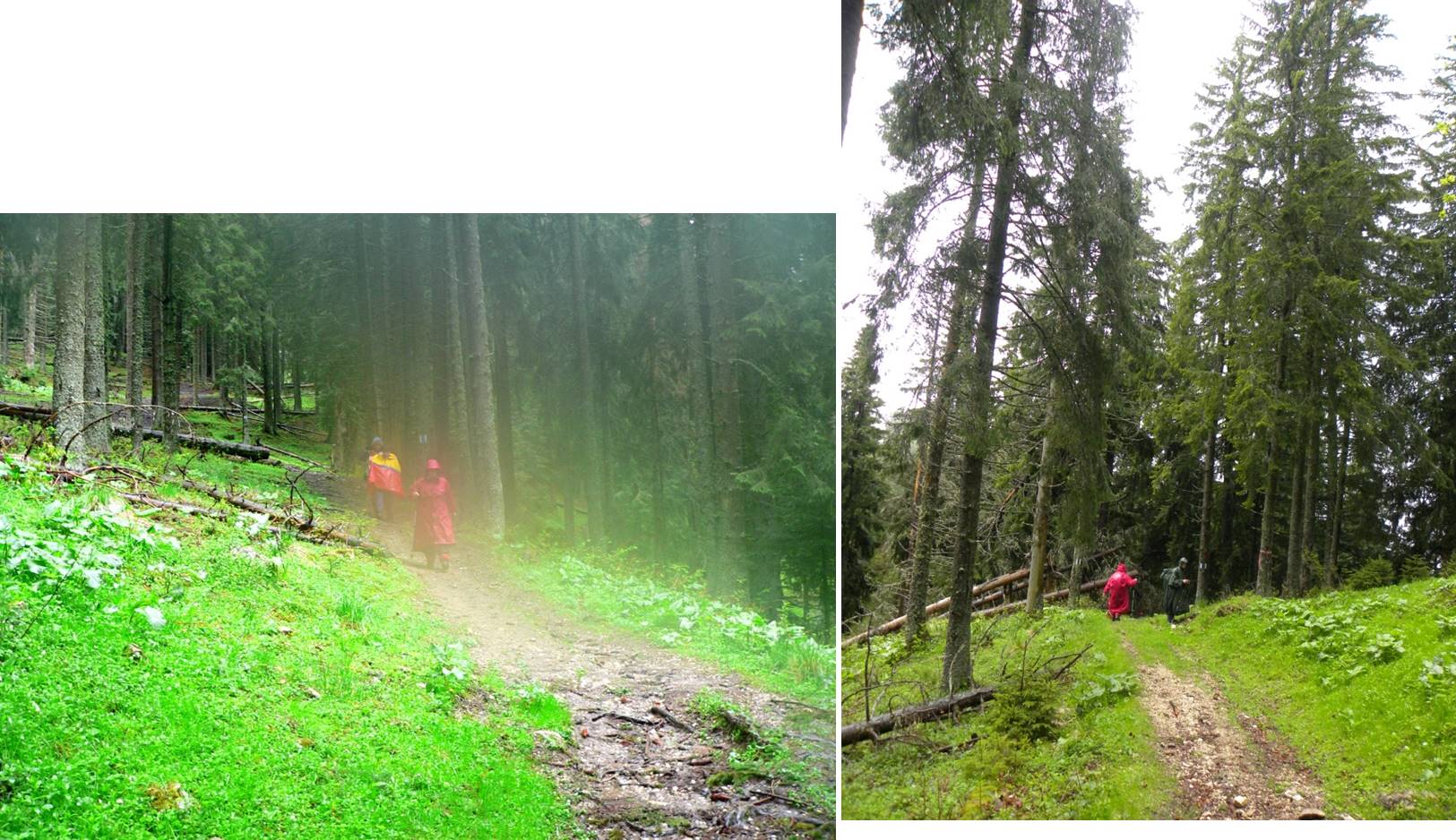 O nouă intersecție, unde ne despărțim de “banda roșie” ce ajunge tot la Cabana Piatra Mare, pe Drumul Familial de pe valea Dașchiei … ș.a.m.d. !