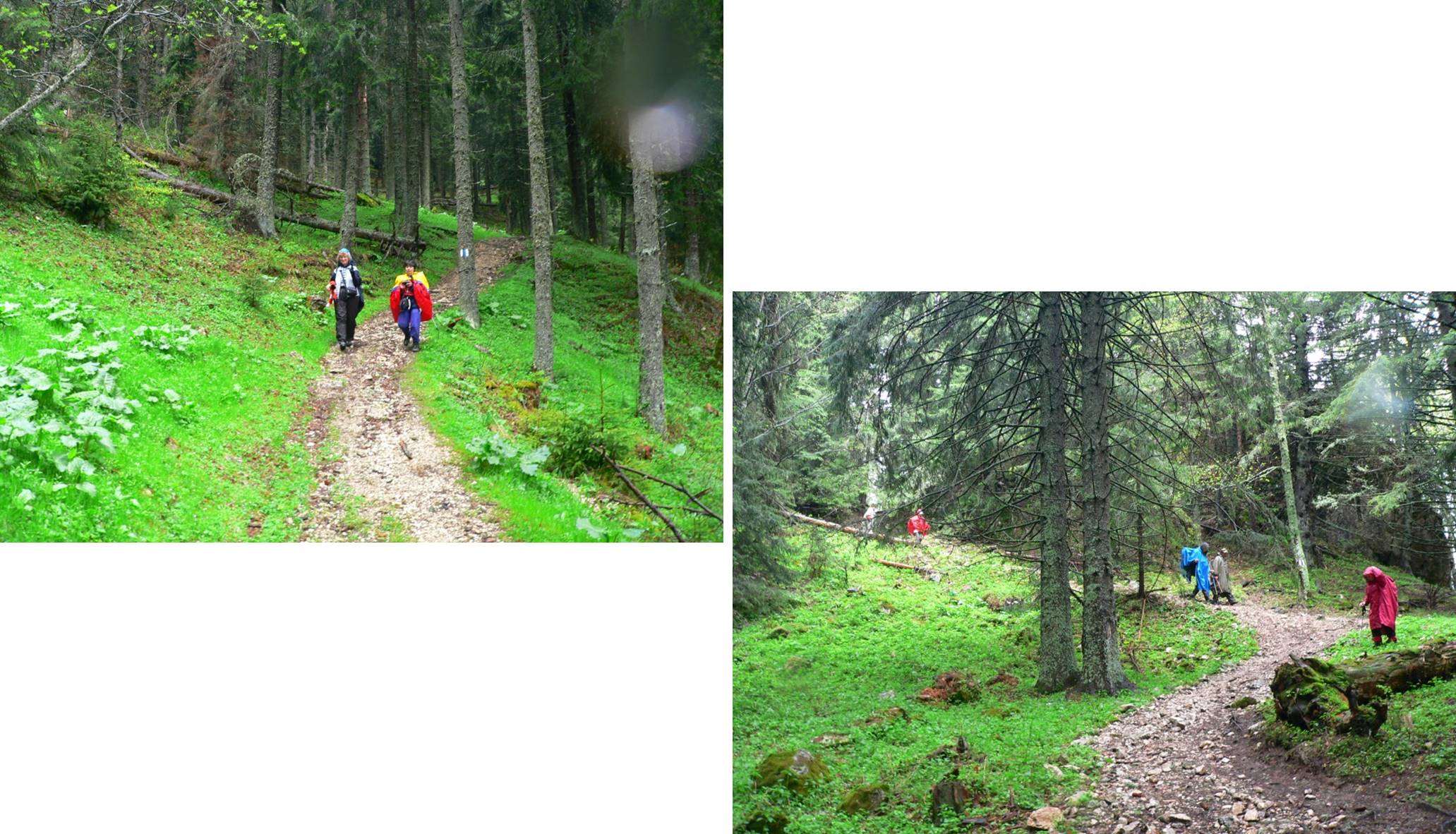 Poteca e largă, în coborâre ușoară și … bine marcată !