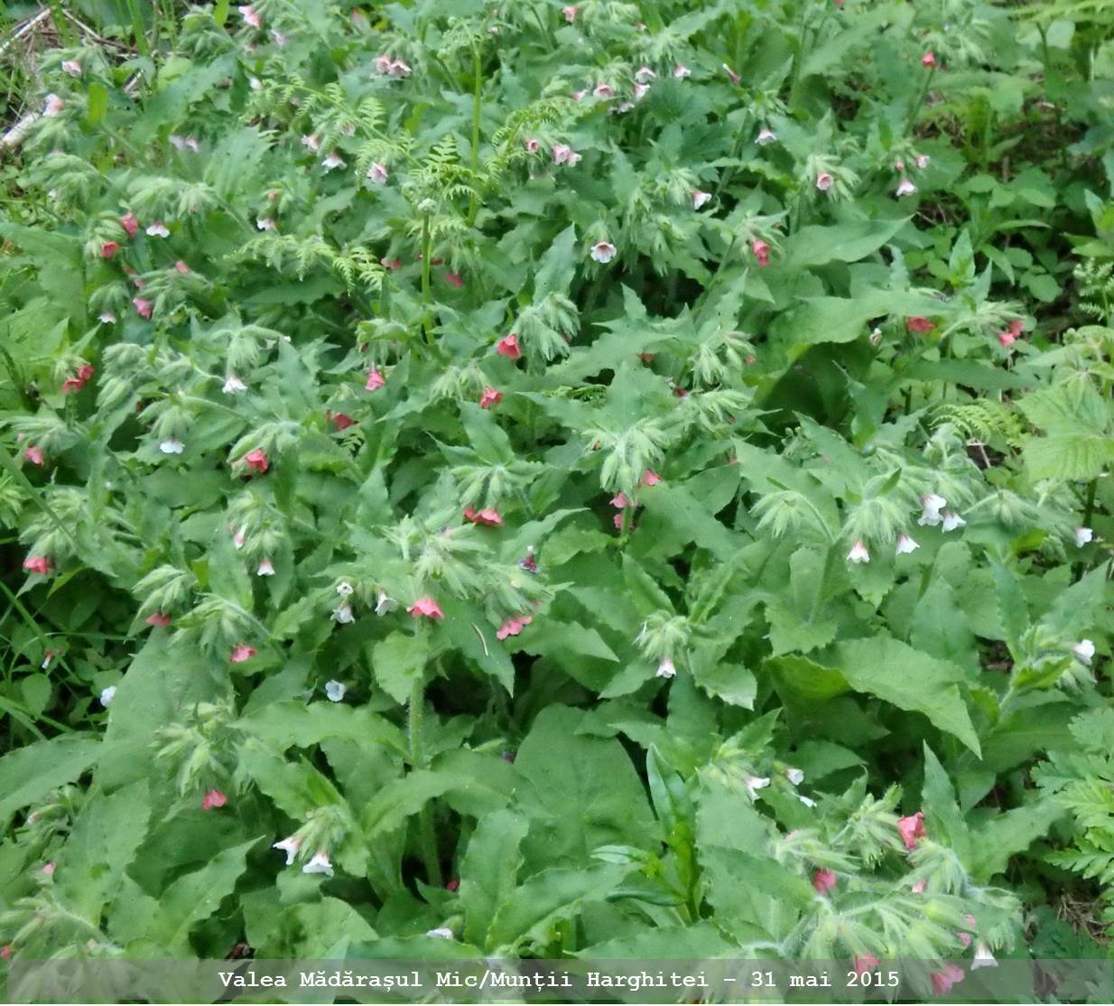 Și tot de pe meleaguri harghitene, un exemplu de albire … progresivă și diferențiată într-o comunitate de cuscrișori (Pulmonaria rubra) !