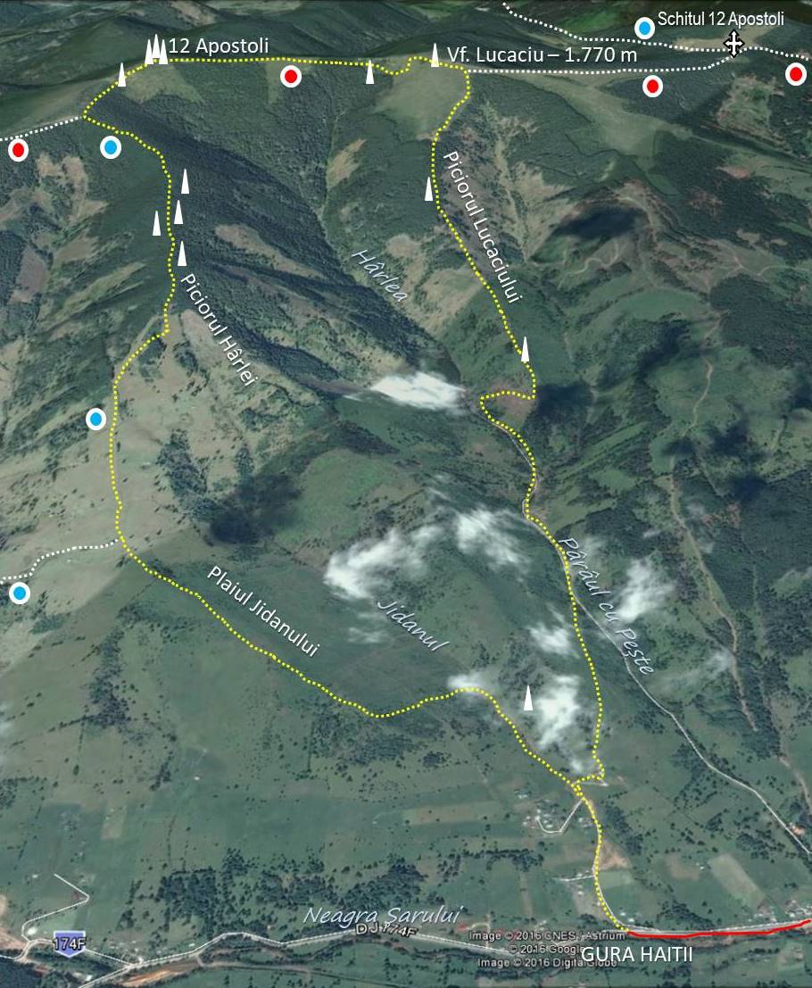 Ziua 3: Gura Jidanului – Pârâul cu Pește – Piciorul Lucaciului – Vf. Lucaciu – La 12 Apostoli – Piciorul Hârlei – Piciorul Jidanului – Valea Jidanului – Gura Jidanului