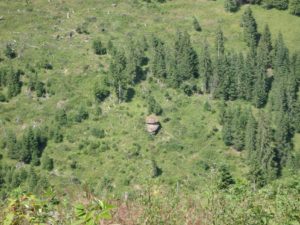 … pe versantul acesteia, conduși de un drum de exploatare !