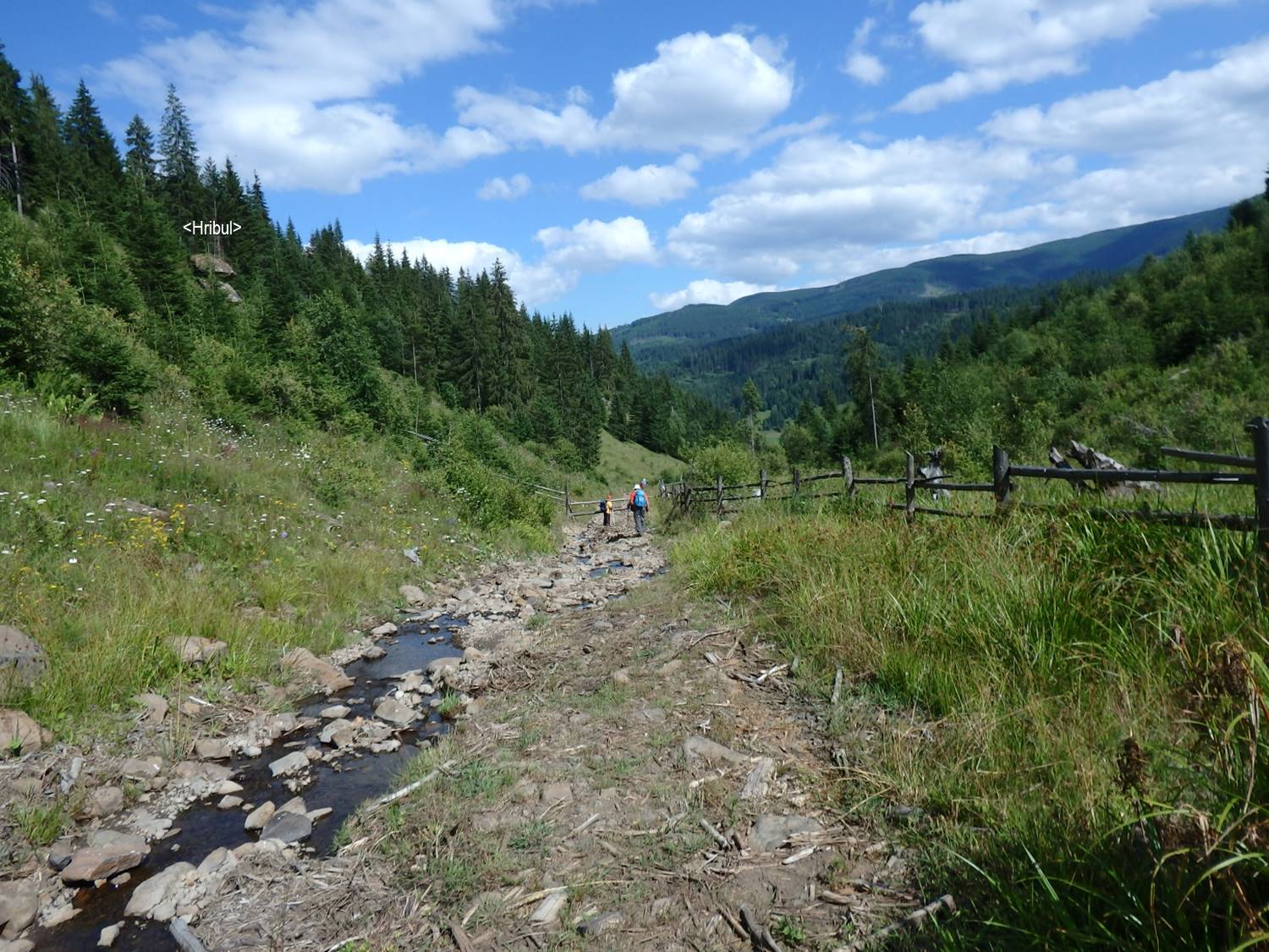 [7:00] Aproape de capătul amonte al Gurii Haitei (N47gr11min57,7sec; E25gr16min02,5sec; alt. 1037 m) se desprinde spre dreapta un drumeag pietruit ce duce, cale de 500 m, la un grup de case.