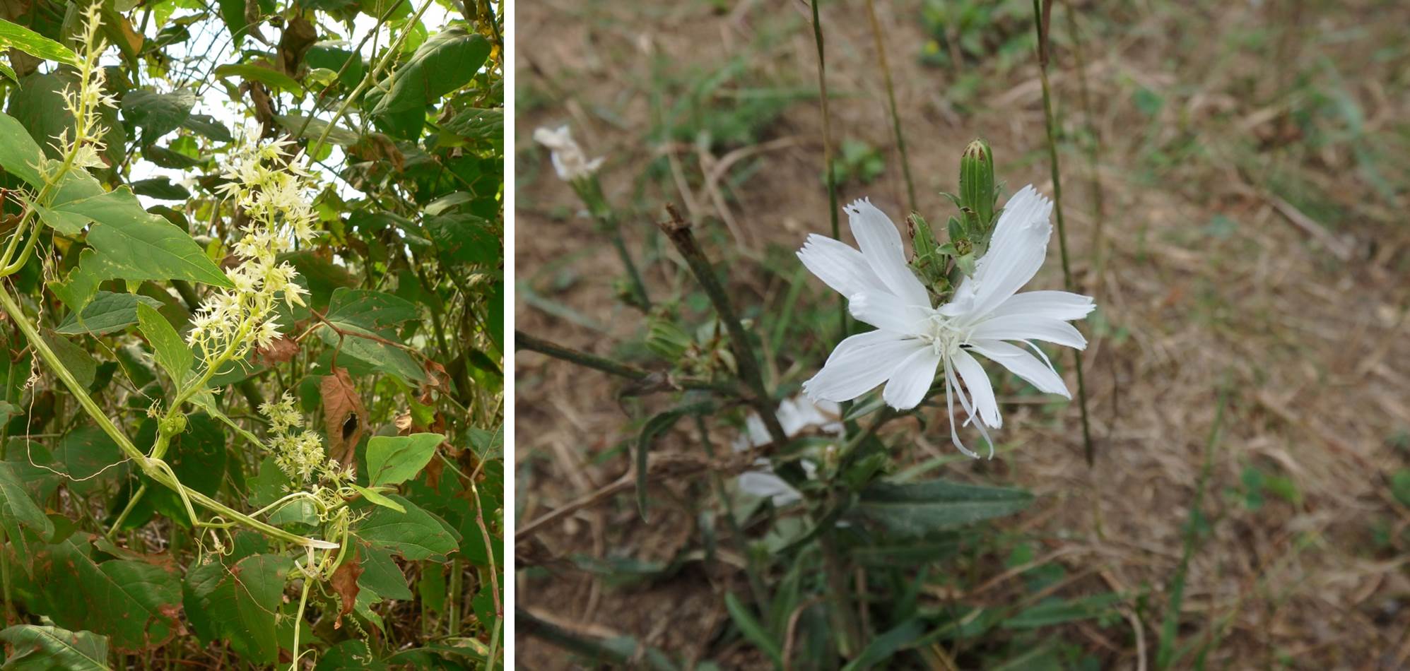 … și … două plante … insolite – fiecare în felul ei: o cicoare albă (Cychorium intibus) – pentru a vedea și alte flori … albinoase, executați click aici ! – și o cucurbitacee adusă din America de Nord, scăpată din cultură și, acum, subspontană, bostănașul-spinos (Echinocystis lobata) !