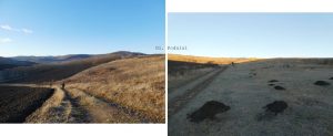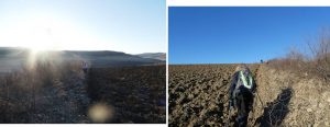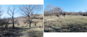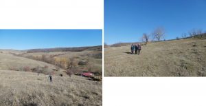Coborâm spre valea Mârzei, țintind breșa făcută de turmele de oi prin gardul de păducel și măceș ce ne taie calea, pe undeva, pe la mijlocul pantei.