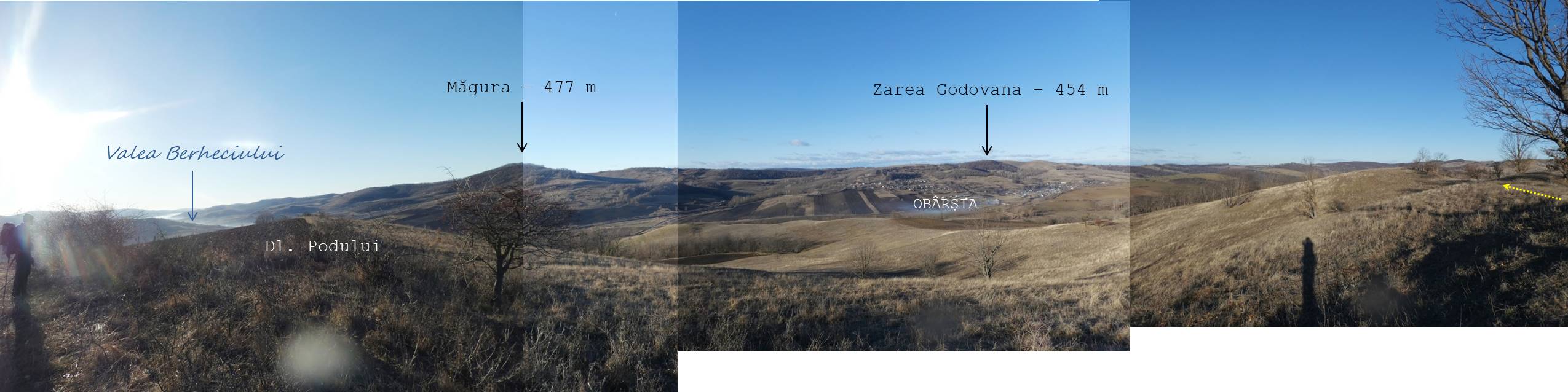 Dar nu pentru prea mult timp, căci după maximum jumătate de oră ajungem în vârful dealului Pod, de unde, în continuare, culmea și versanții acestuia, ca și ai dealului ce urmează, al Mârzei, sunt acoperiți de ierburi, arbuști și petice de pădure.
