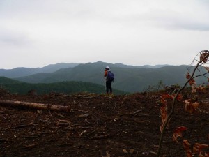 – imediat în spate-stânga, Vârful Secătura Grozei (909 m), iar mai stânga,