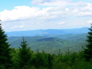 văzute din poiana ce precedă coborârea spre Plaiul Ciungetului