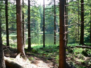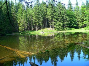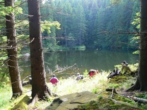 Deasupra uneia dintre obârşiile Izvorului Negru, scăpaţi pentru o vreme de chingile pădurii;