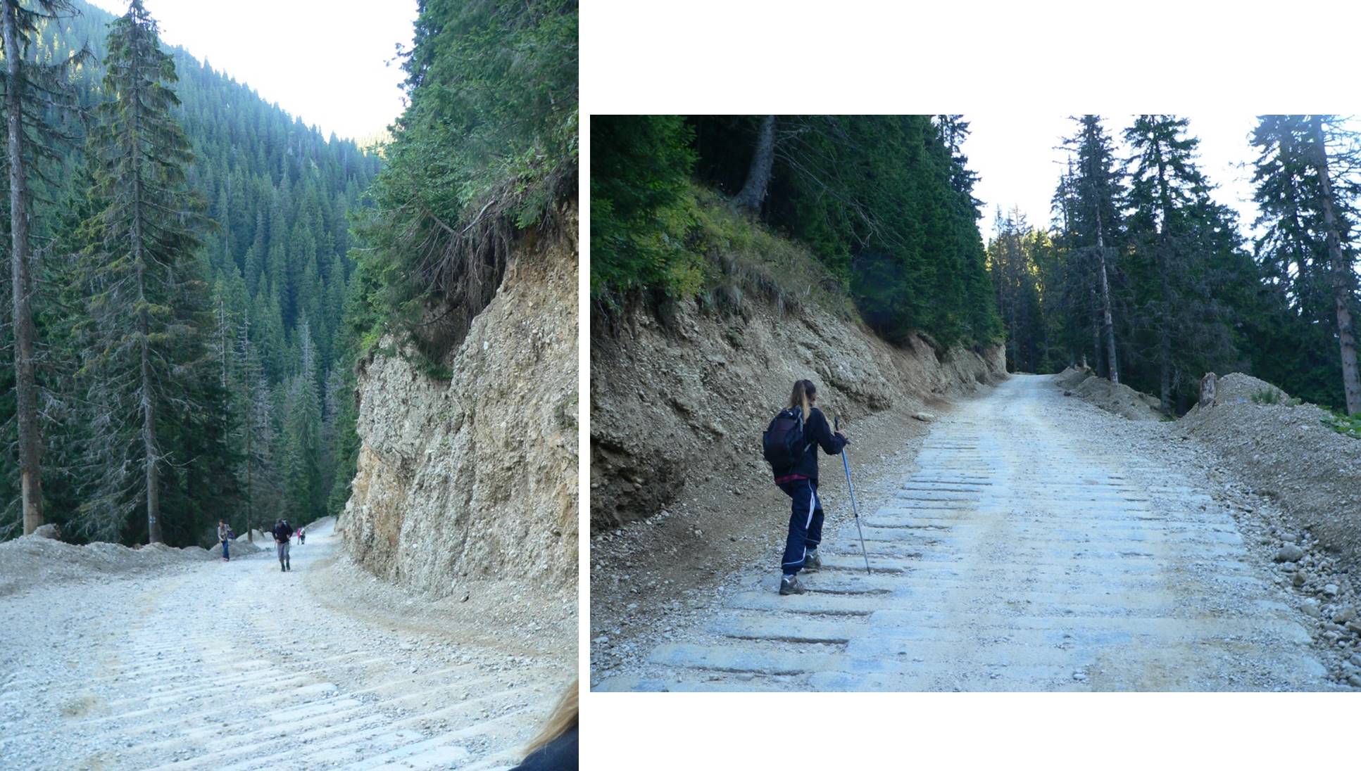 După ce depășim intersecția cu poteca “bandă galbenă”, ce face legătura cu Cabana Muntele Roșu, …