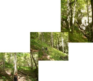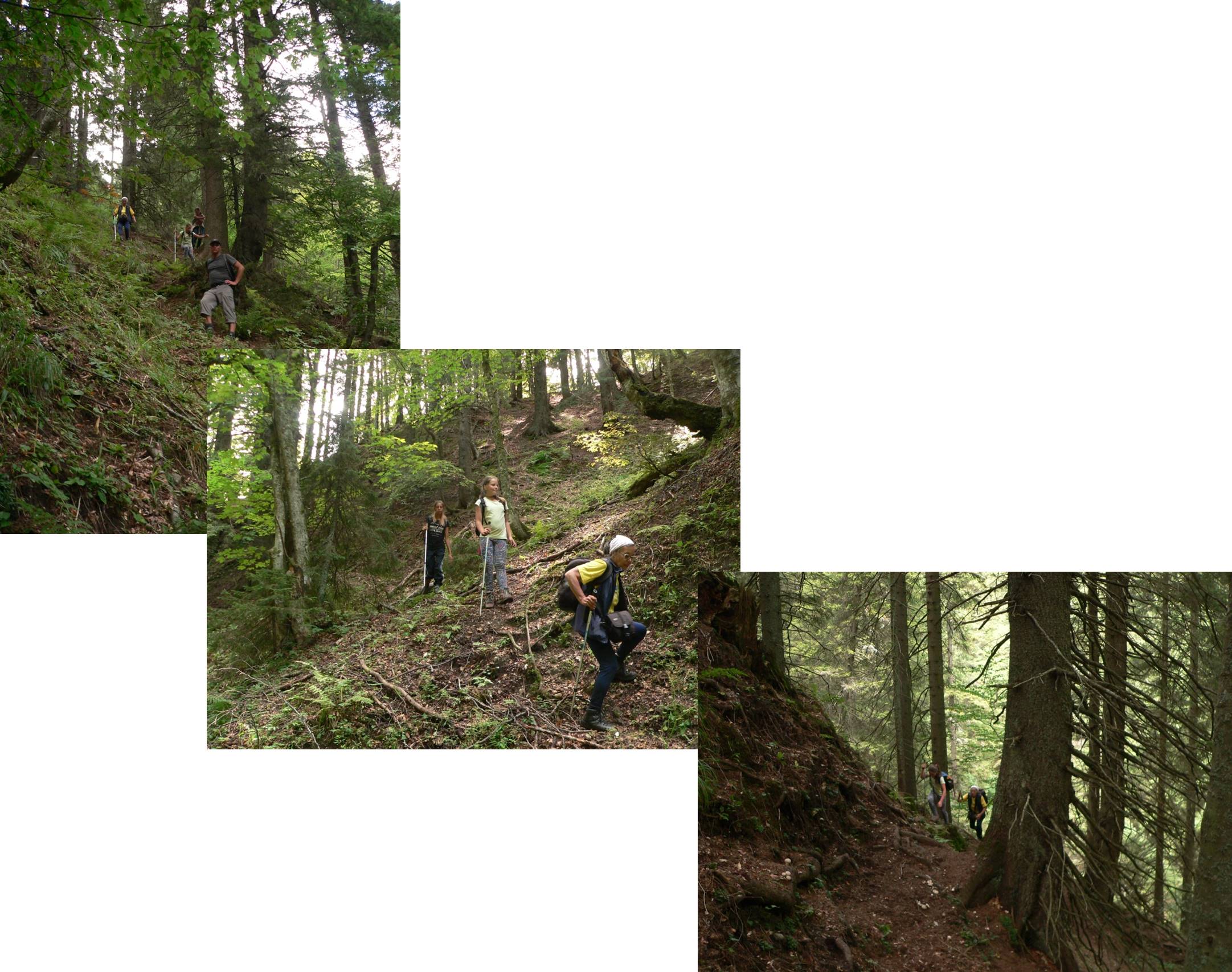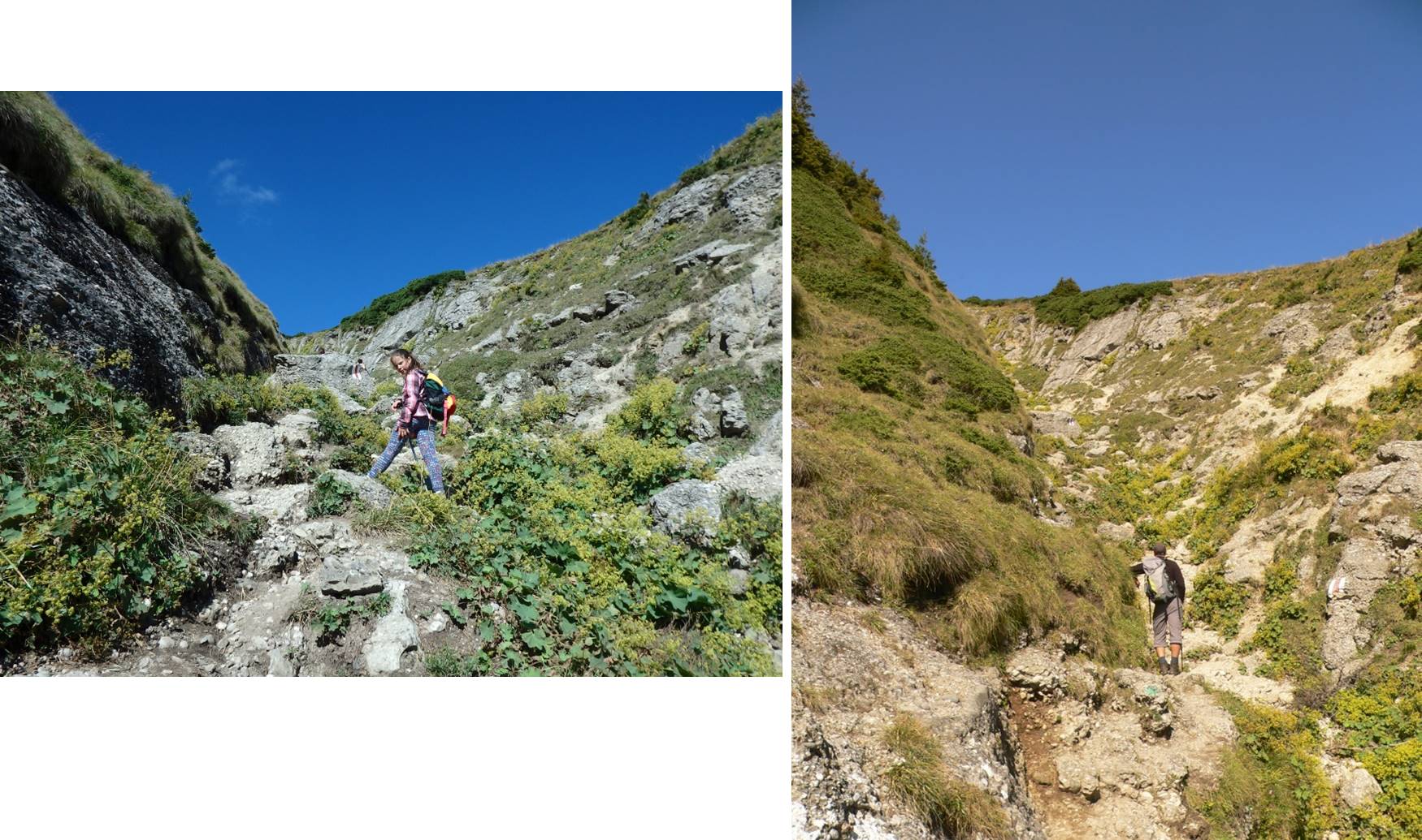 Poteca părăsește curând albia – care devine inaccesibilă – angajându-se pe versantul ei drept, …