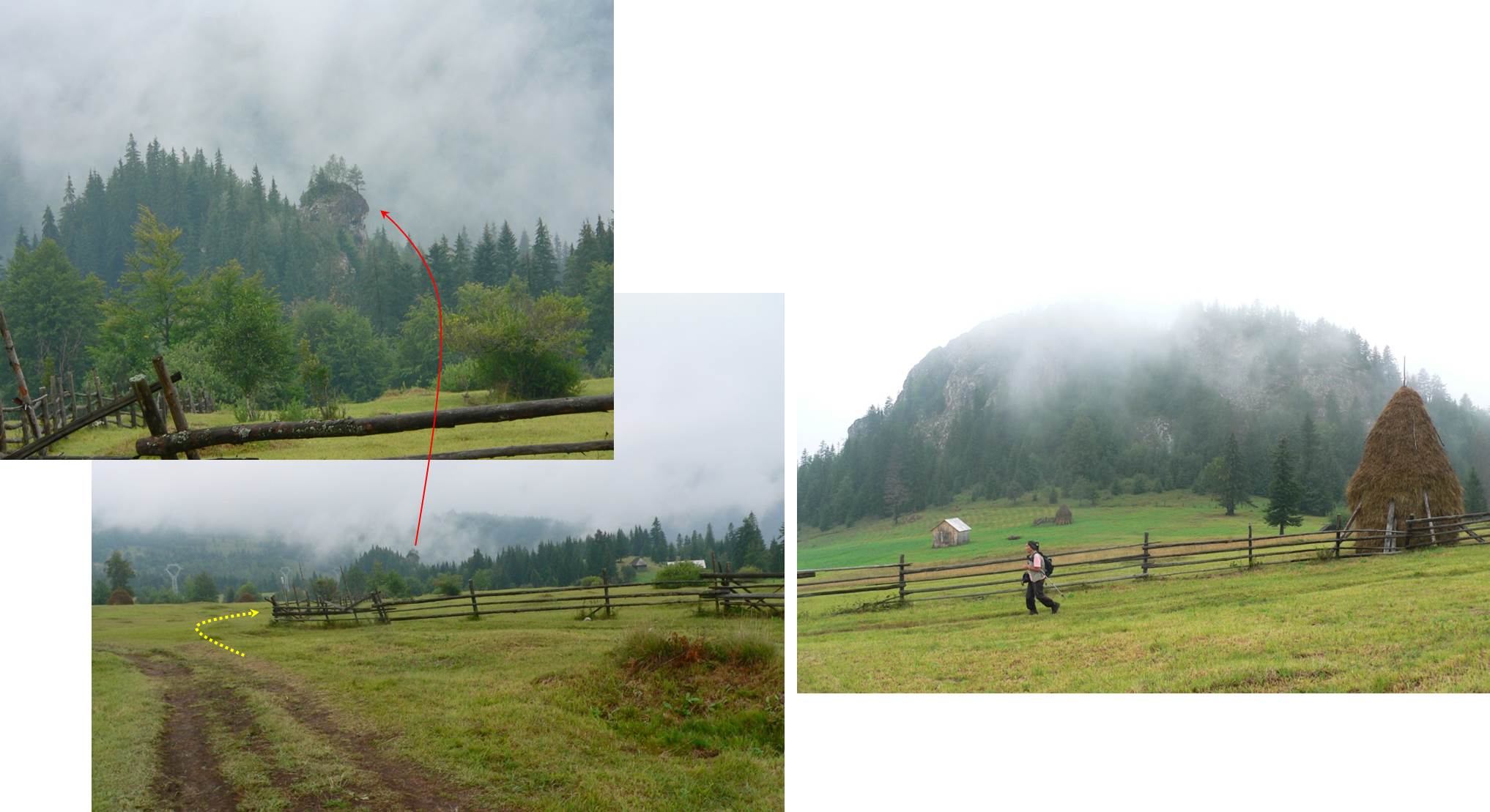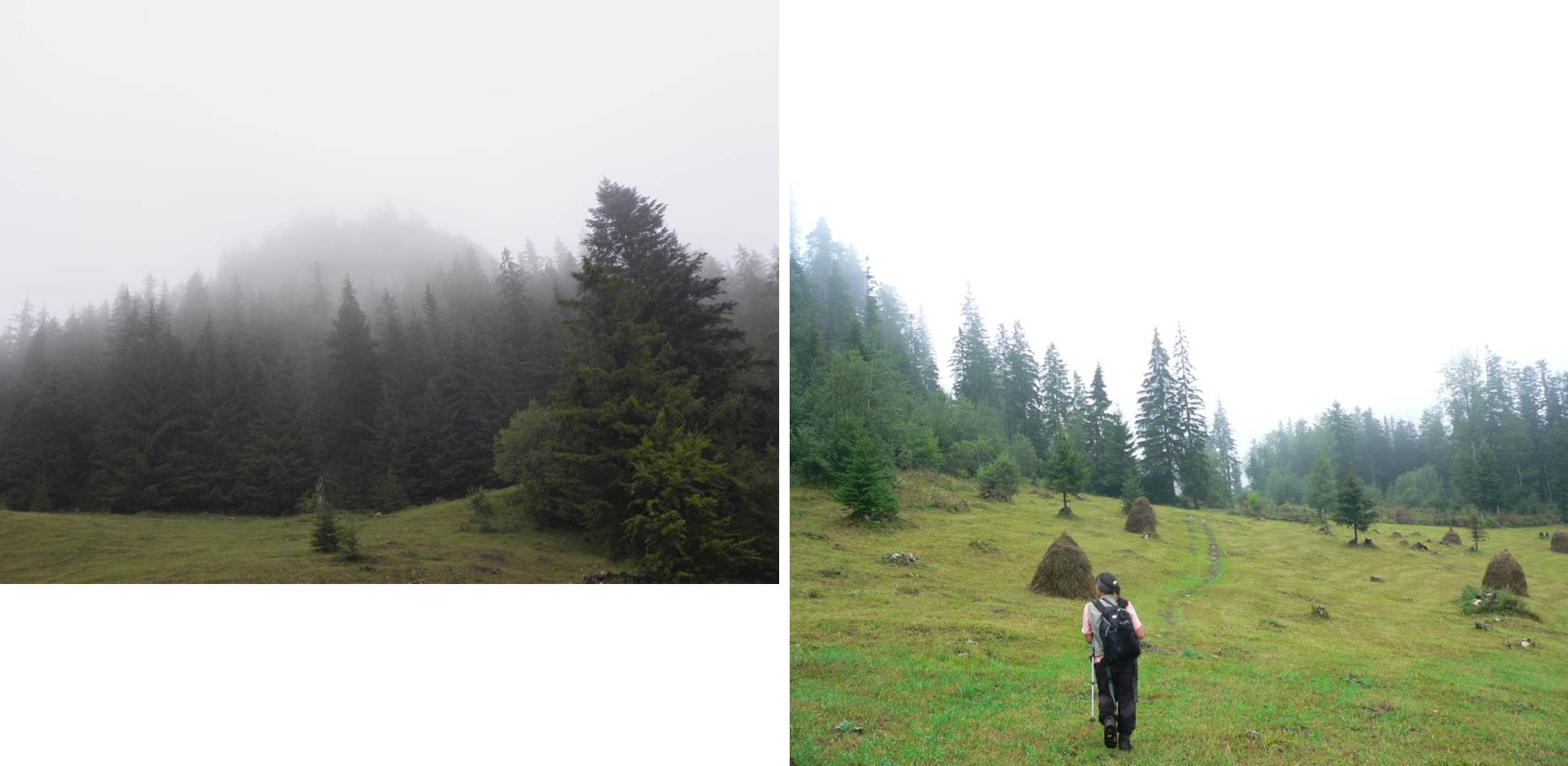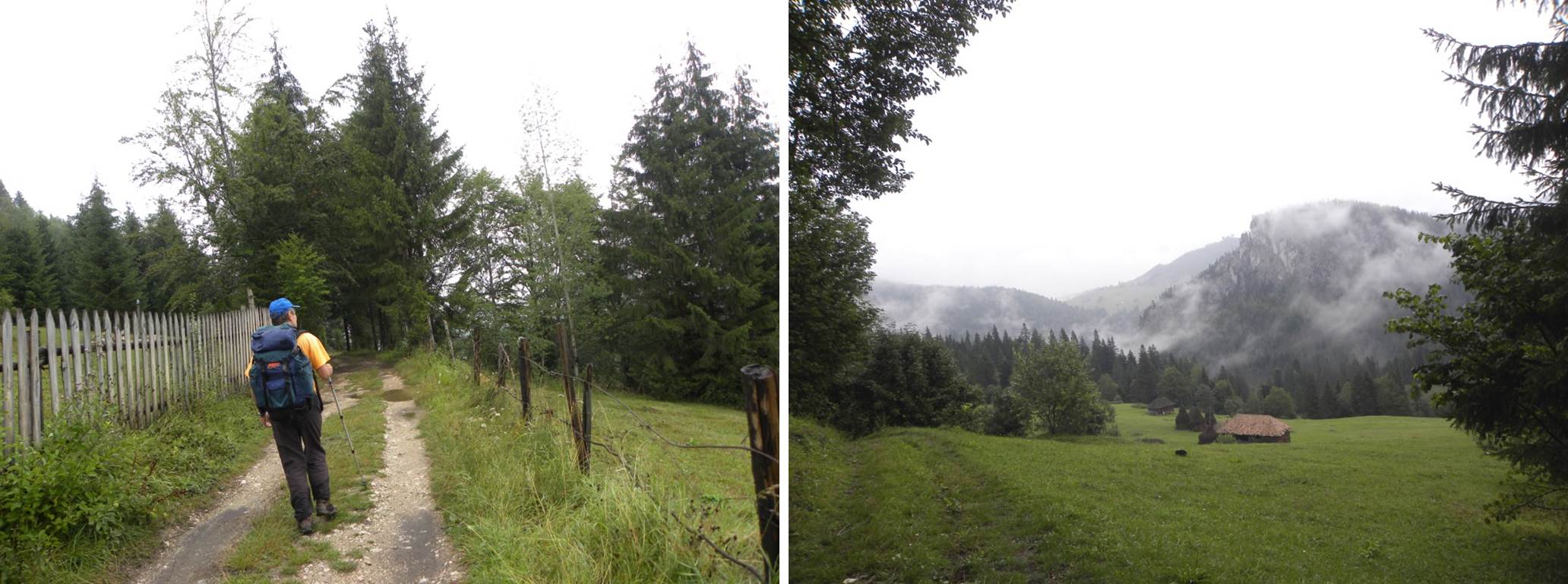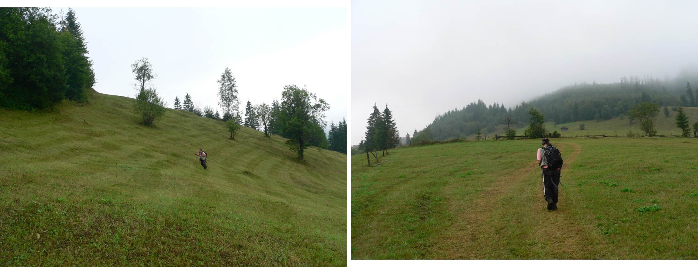 … coborând (în general) prin pădure și, în final, prin poieni și fânețe …