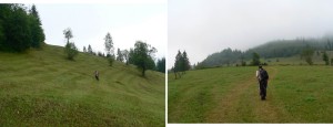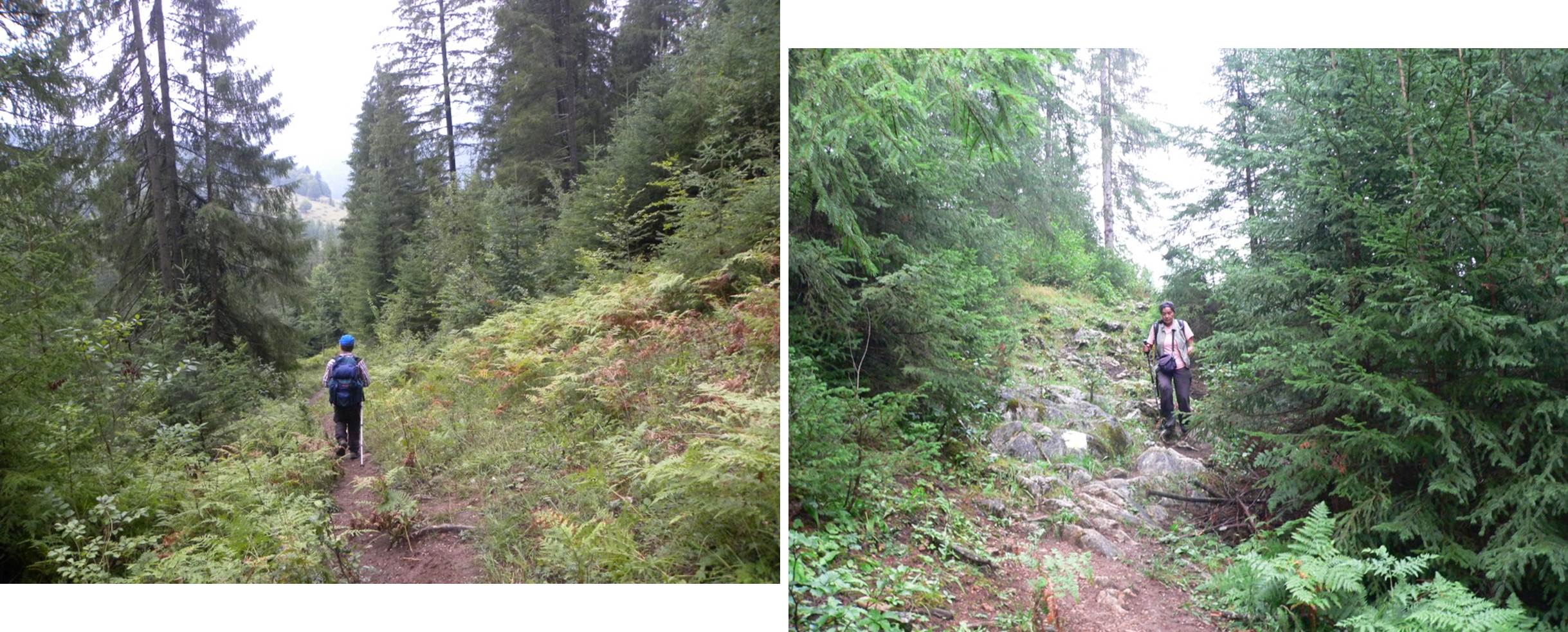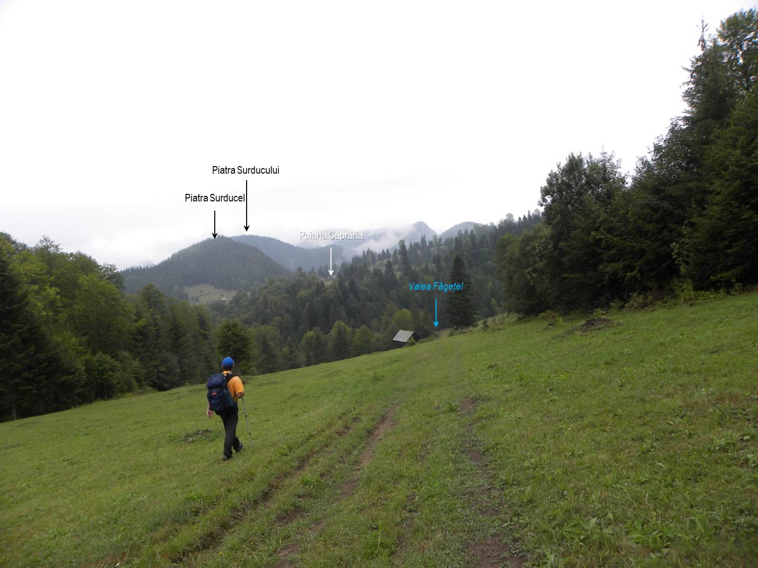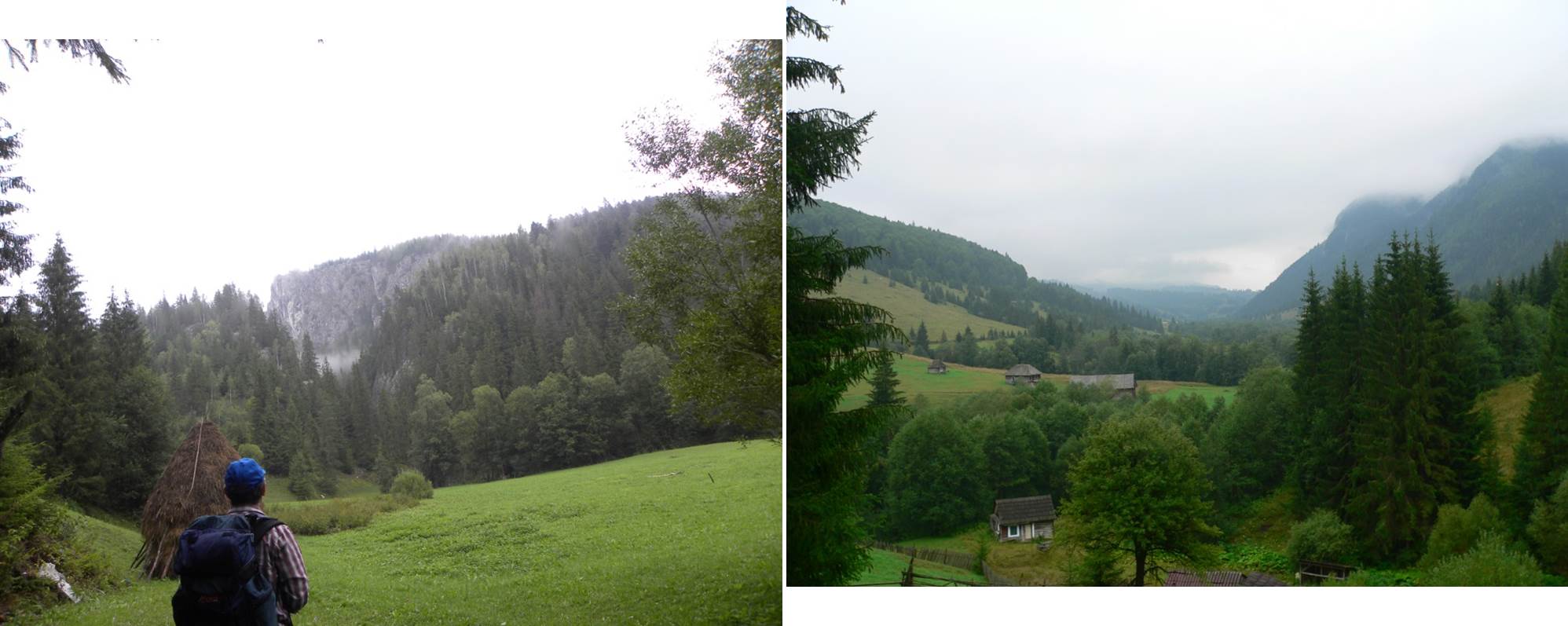 … coborând (în general) prin pădure și, în final, prin poieni și fânețe …