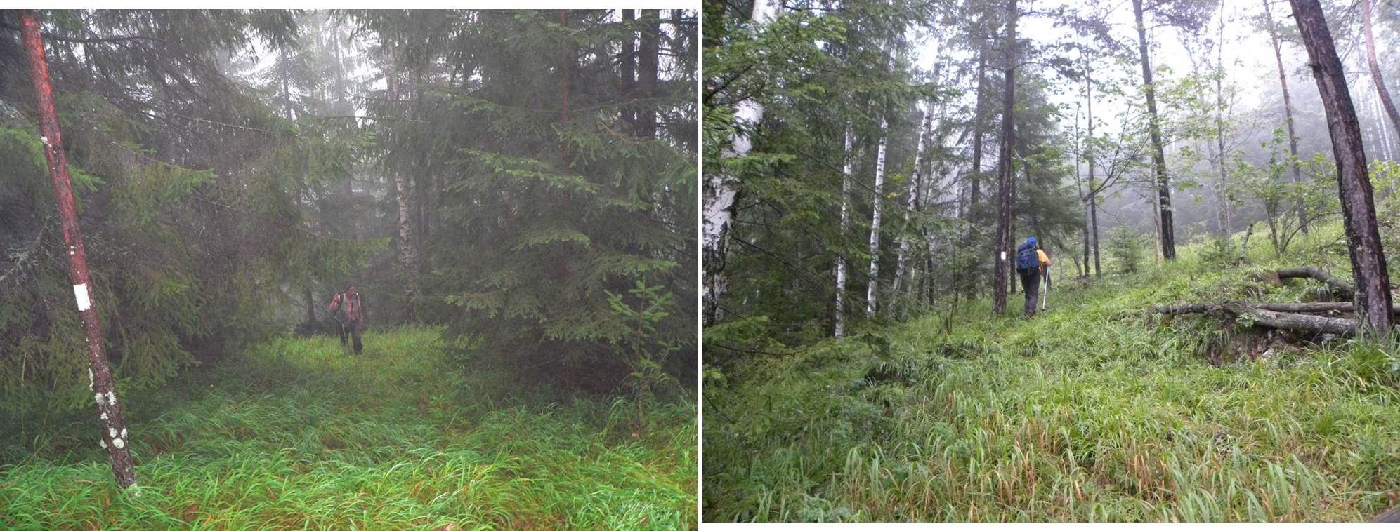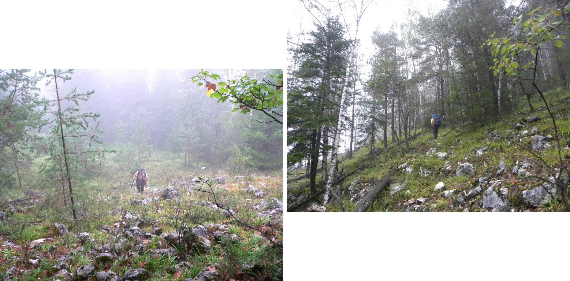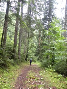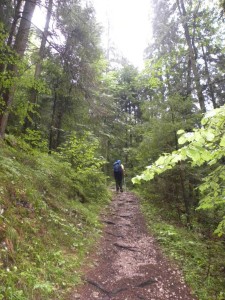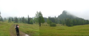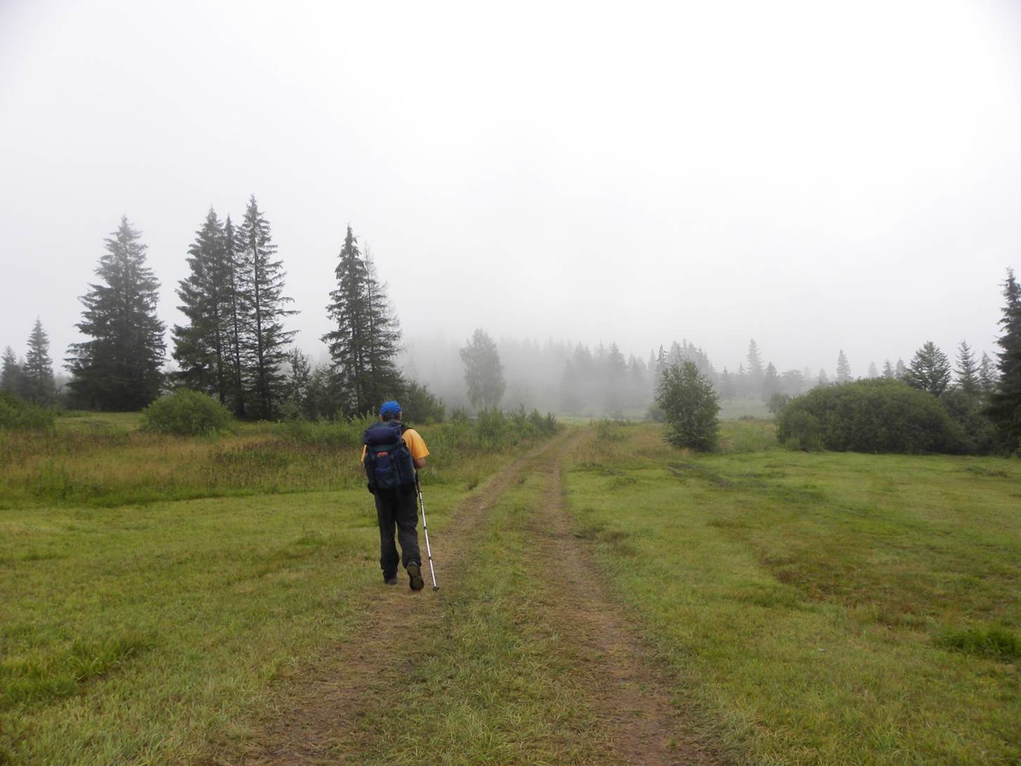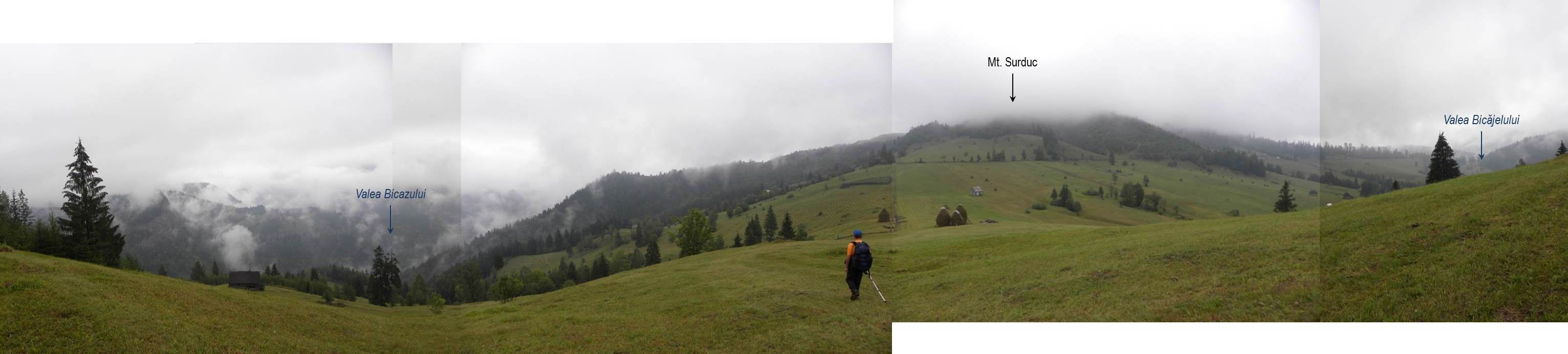 … coborând (în general) prin pădure și, în final, prin poieni și fânețe …