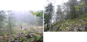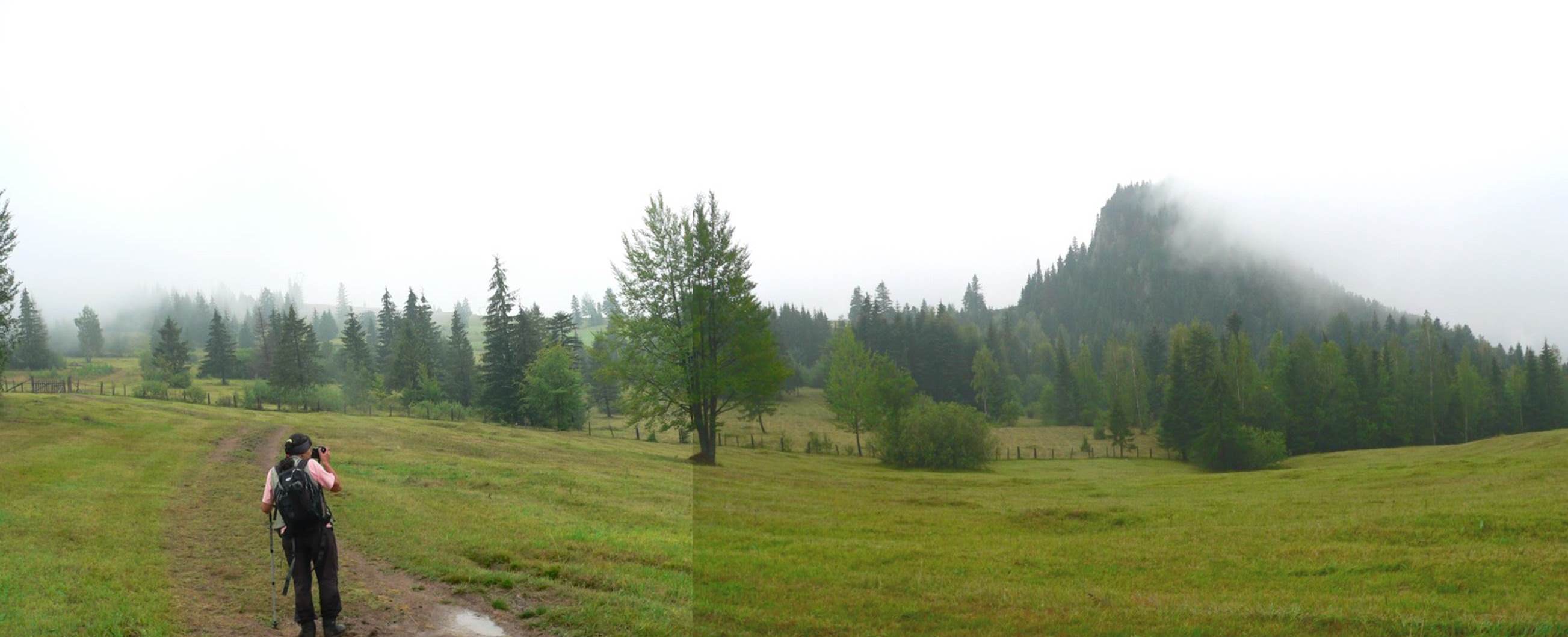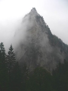 Trecem pe lângă Piatra Luciului, cam … estompată în ceață, …