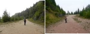 … coborâm pe drumul, marcat cu bandă galbenă, al Surducului, …