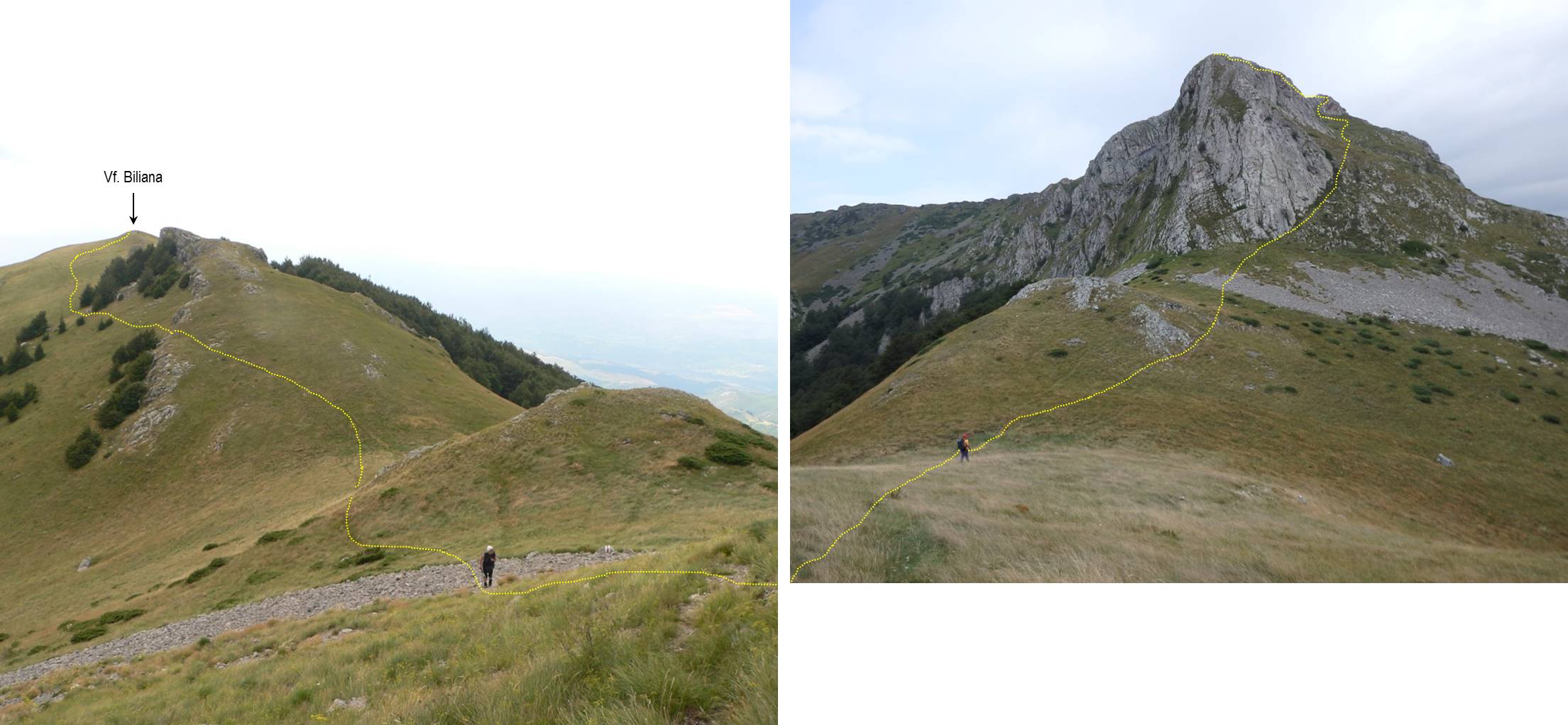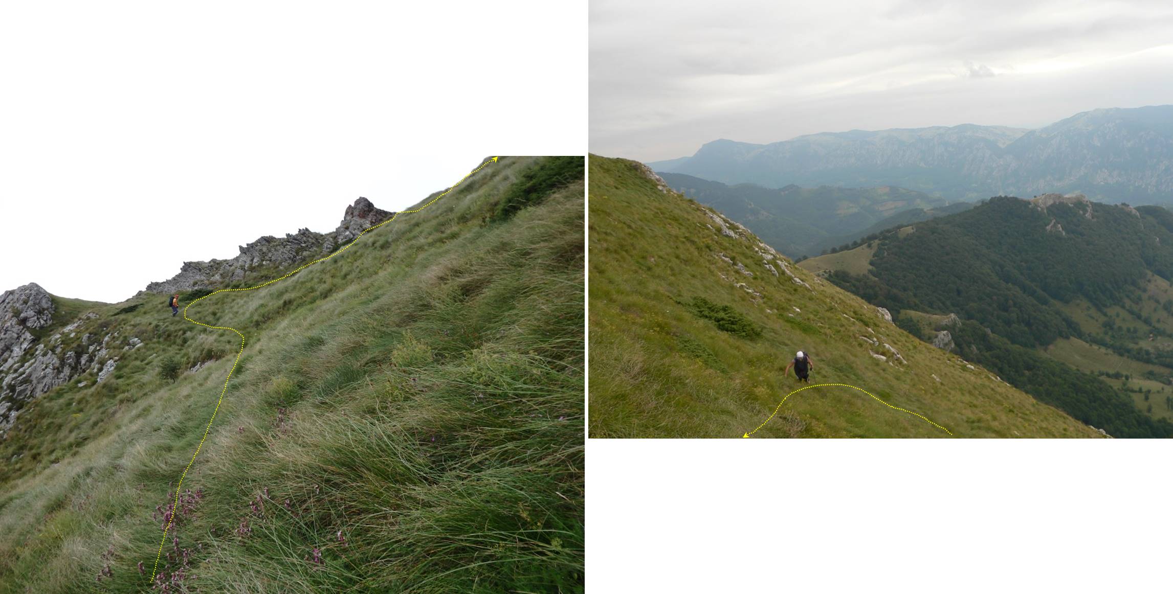 Urmele unei poteci de oi ne trag spre versantul său stâng …