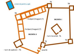 … comune pentru cele două incinte – construite în intervale de timp diferite; pătrundem în incinta I, …