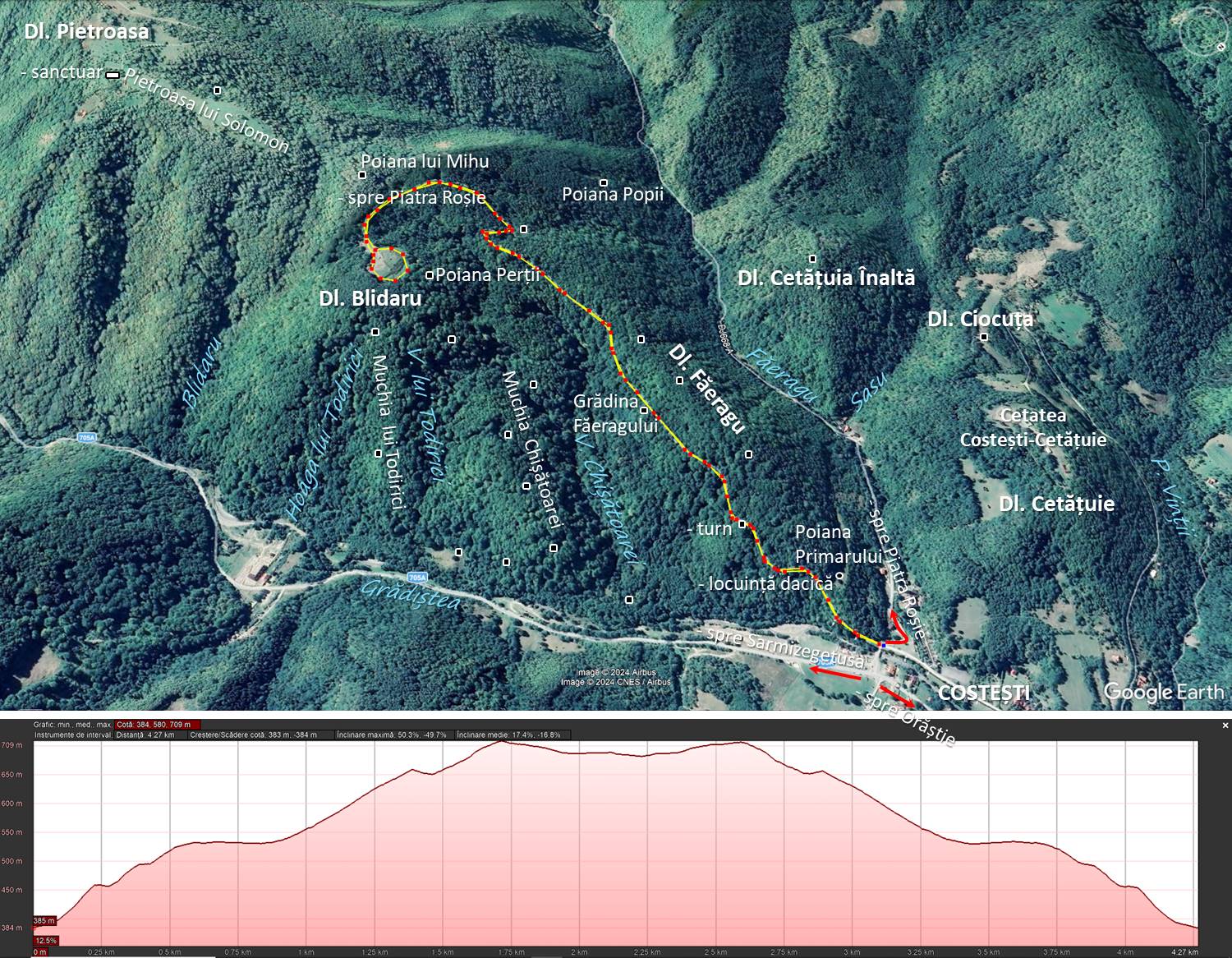 Coborârea de pe culmea Făeragului încheie scurta incursiune la Cetatea Blidaru, după 4,5 km parcurși (dus-întors) pe o diferență de nivel pozitivă absolută de cca 400 m, în cca 3 ore și un sfert (cu popasuri cu tot) !