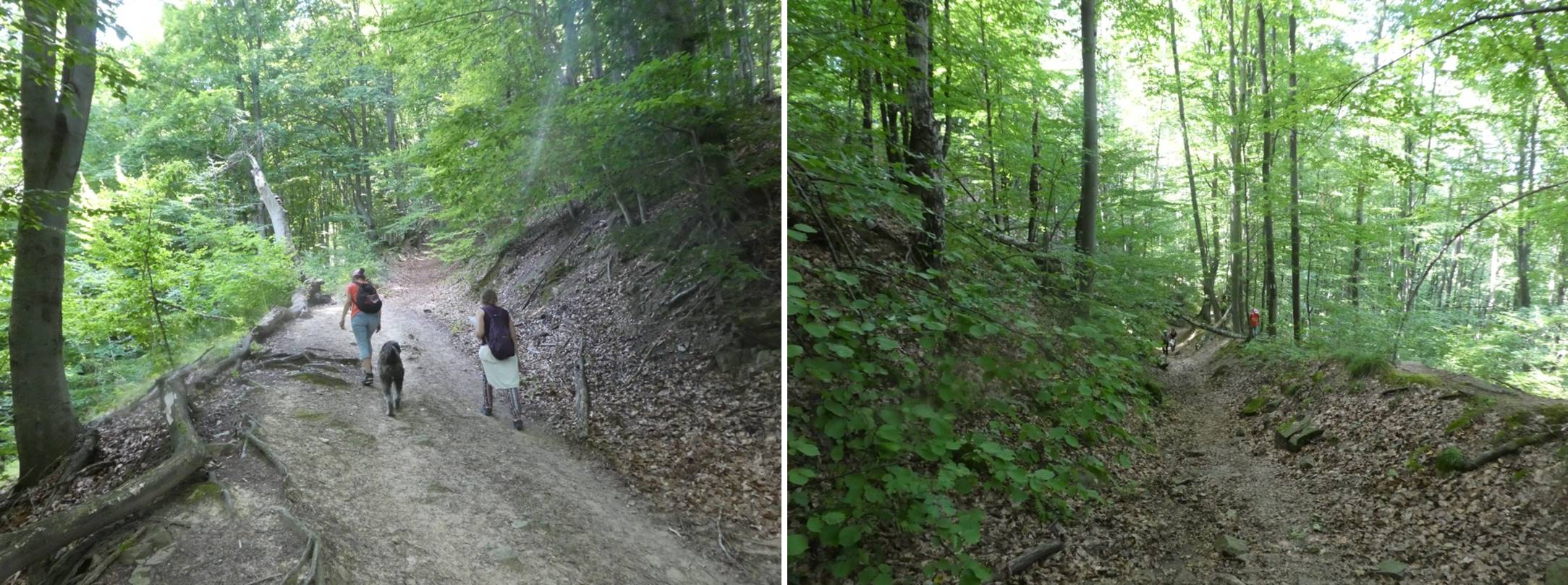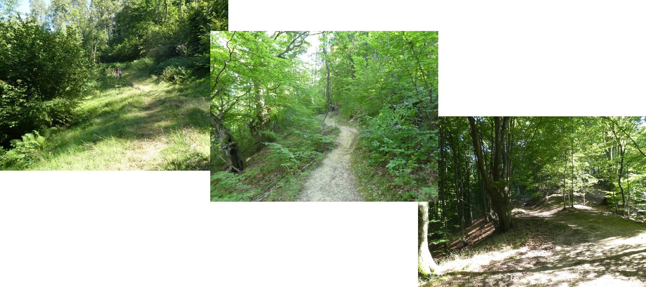 Un cot mai pronunțat al potecii spre stânga marchează trecerea de pe culmea Făeragului pe Dealul Blidaru, unde pădurea, tânără fiind, e ceva mai luminoasă.