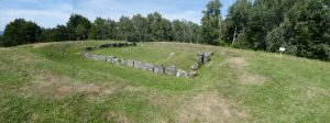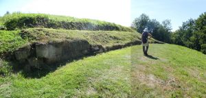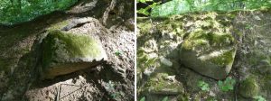 … observăm acum câteva blocuri prelucrate antropic provenite, probabil, de la unul dintre turnurile ce supravegheau accesul spre cetate.