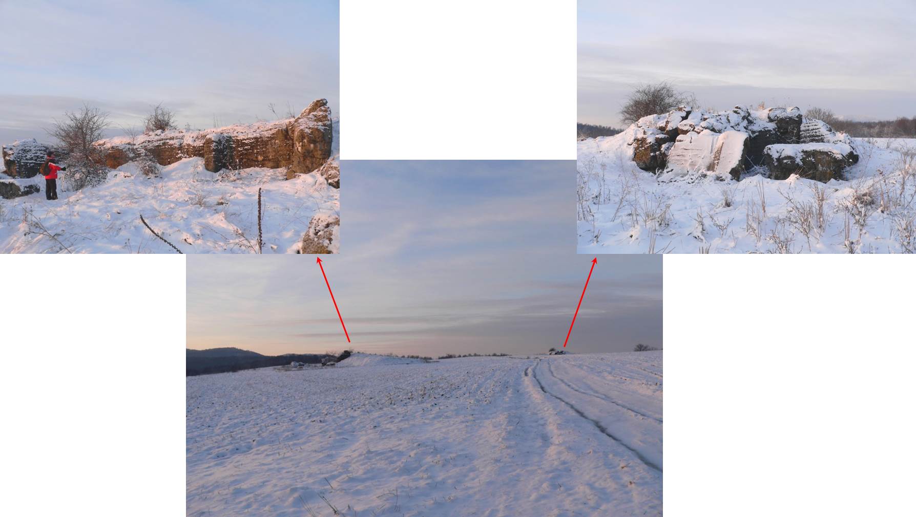 Trecem pe lângă ruinele a două cazemate construite în Primul Război Mondial, …
