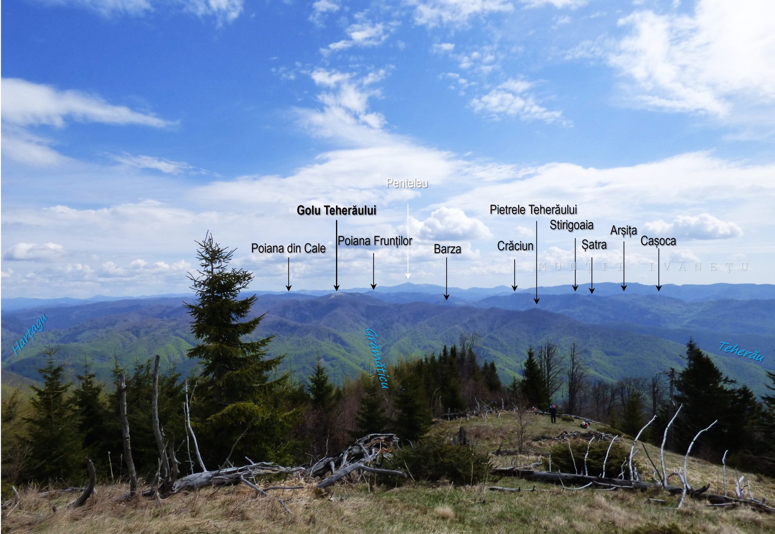 Tot pe o culme secundară se află poate cel mai spectaculos vârf al masivului, Golul Teherău, datorită vastului … gol din zona sa somitală – devenind astfel, cel mai remarcabil din masiv la o privire aruncată din munții vecini (în speță, Siriu) – oferind totodată și largi panorame către cele patru zări !