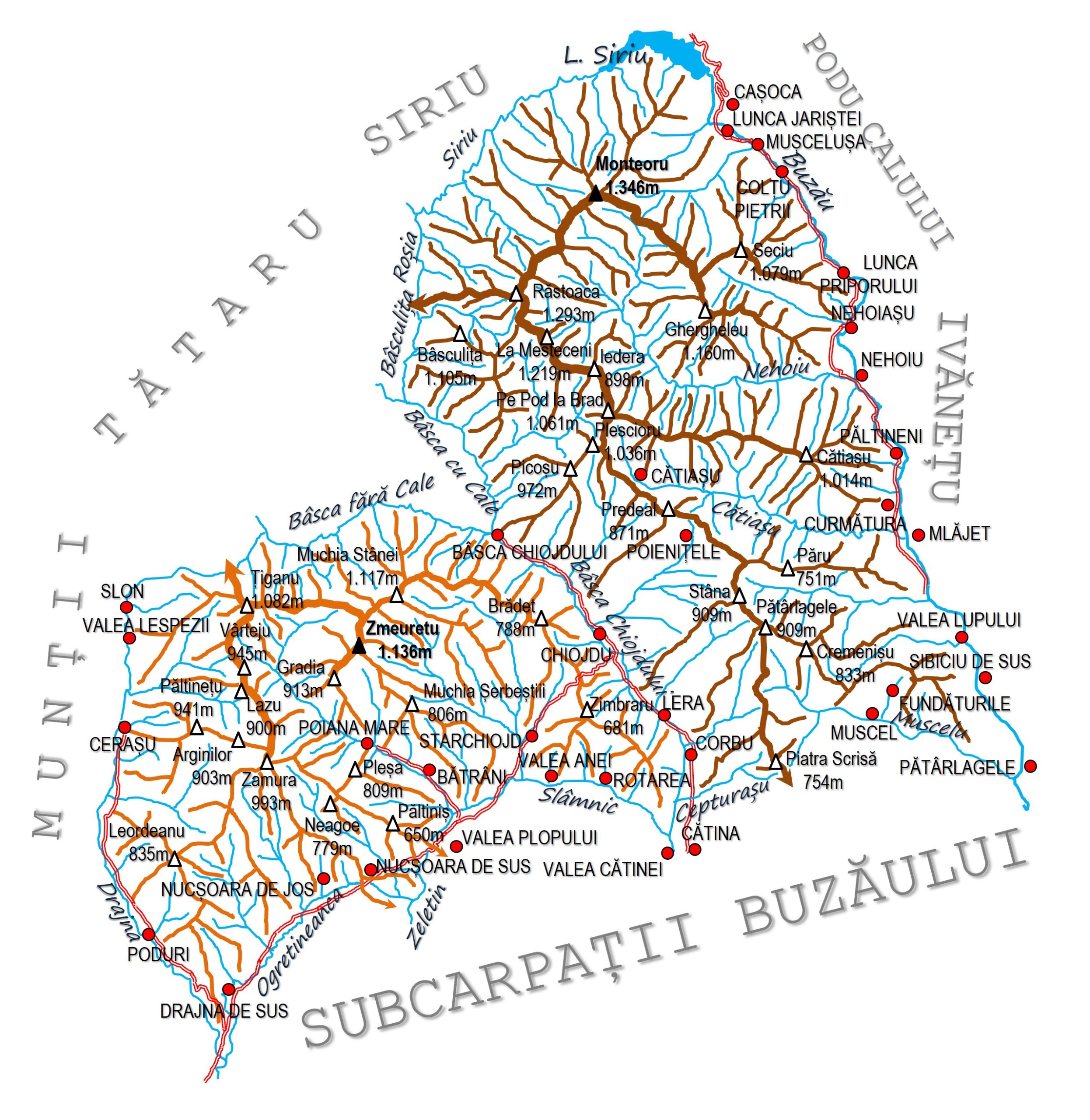 Două (mini)masive montane, Monteoru și Zmeuretu – asamblate de noi sub sintagma Munceii Buzăului – completează panoplia montană a Munților Buzăului.