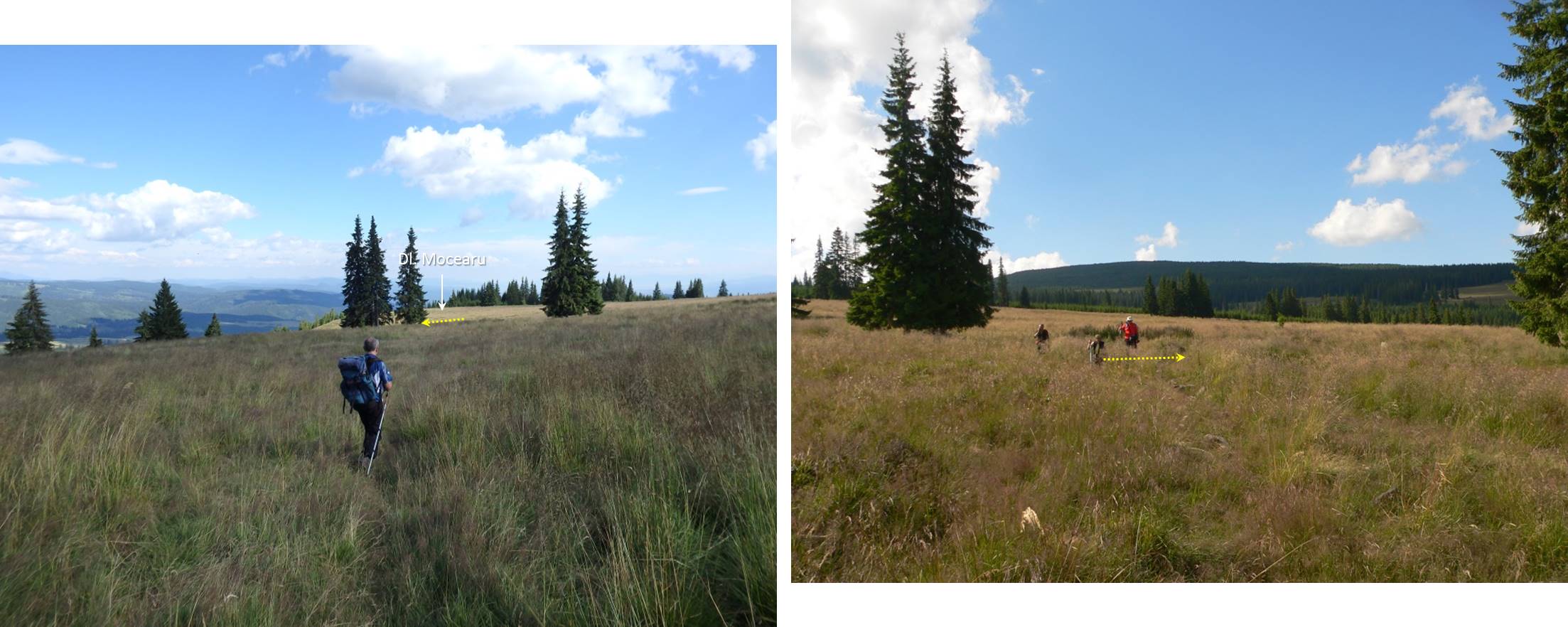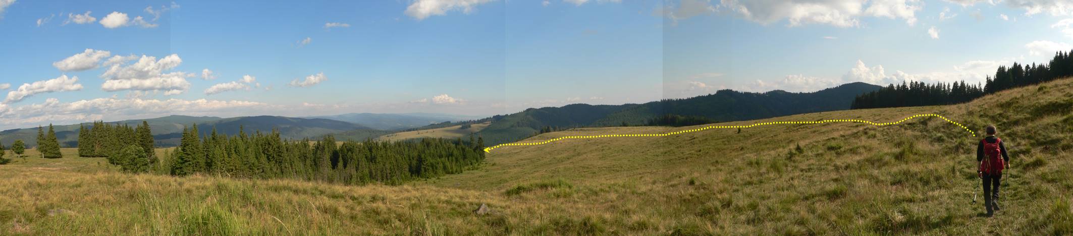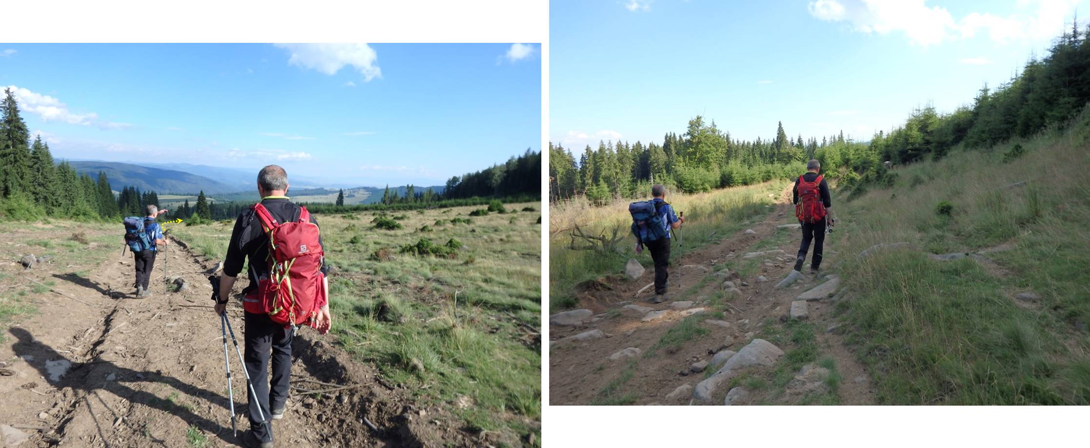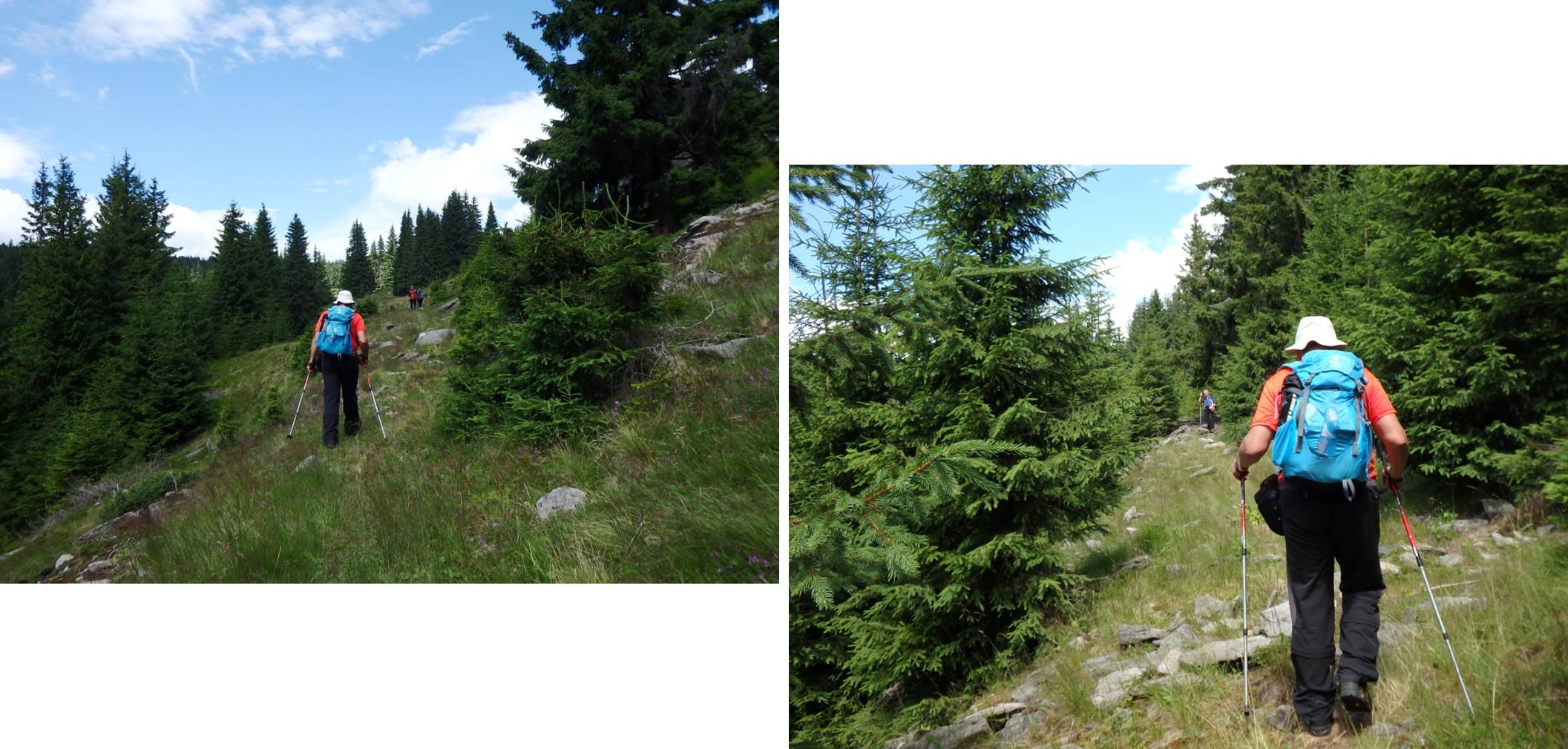 … coborâm, un timp, sub culme, spre sud-est, dar, la prima bifurcare a drumului, schimbăm direcția cu 90 de grade, pentru a prinde direcția sud a culmii Mocearului !