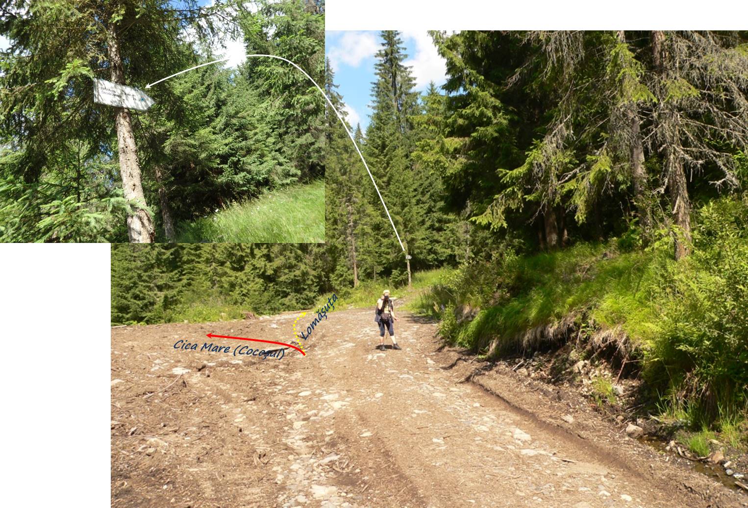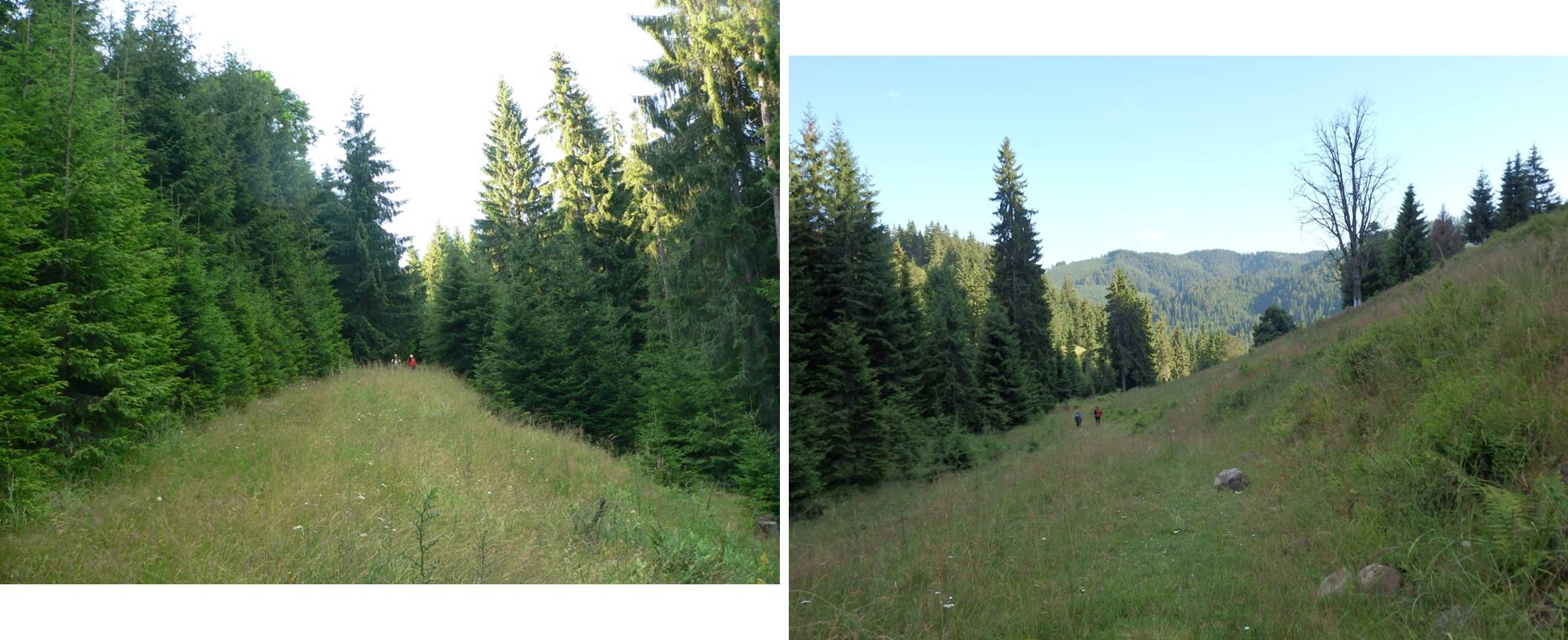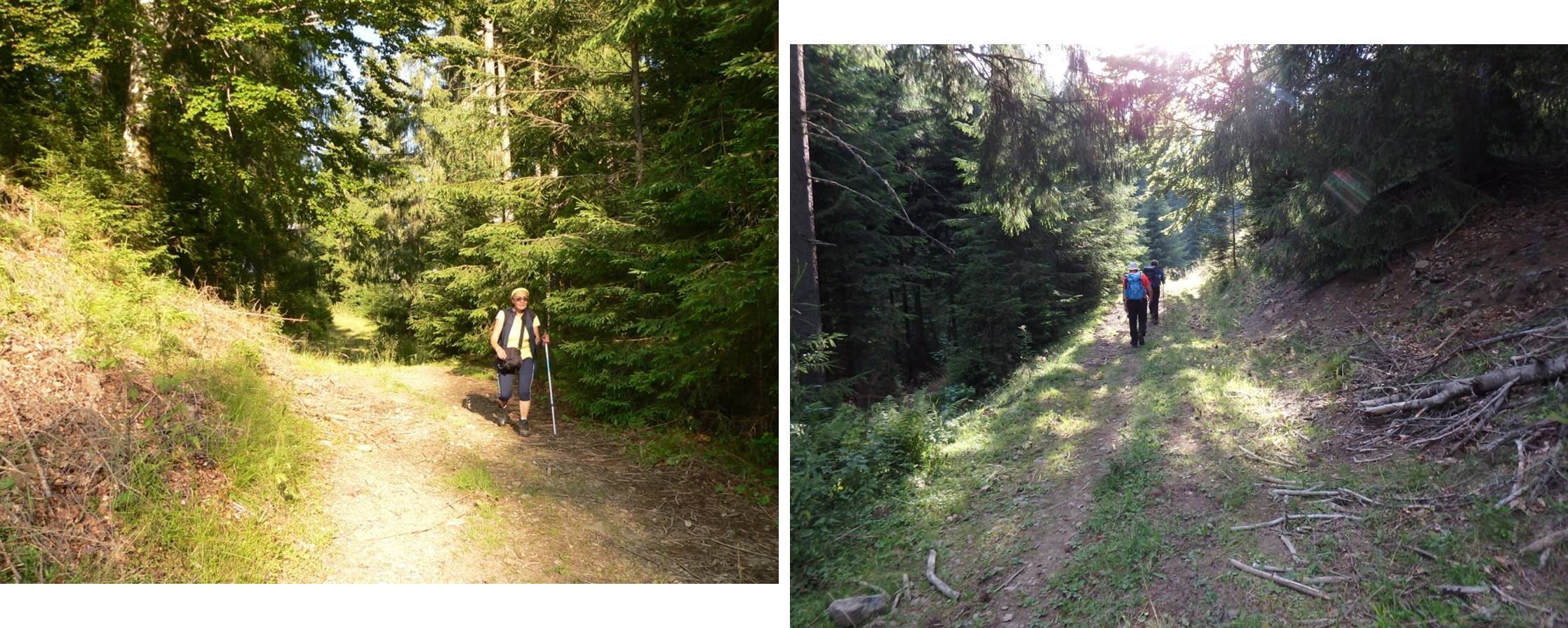 … coborâm, un timp, sub culme, spre sud-est, dar, la prima bifurcare a drumului, schimbăm direcția cu 90 de grade, pentru a prinde direcția sud a culmii Mocearului !