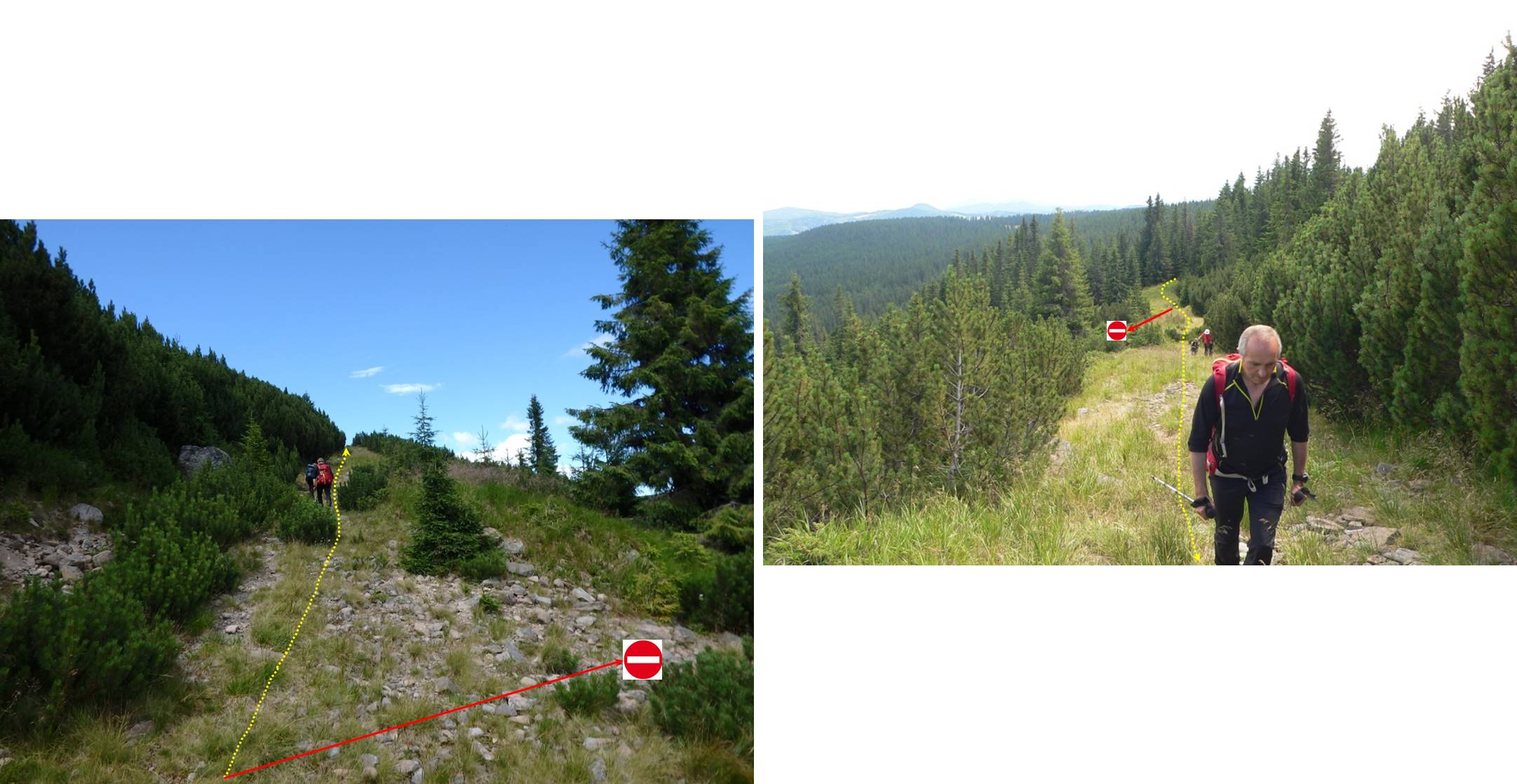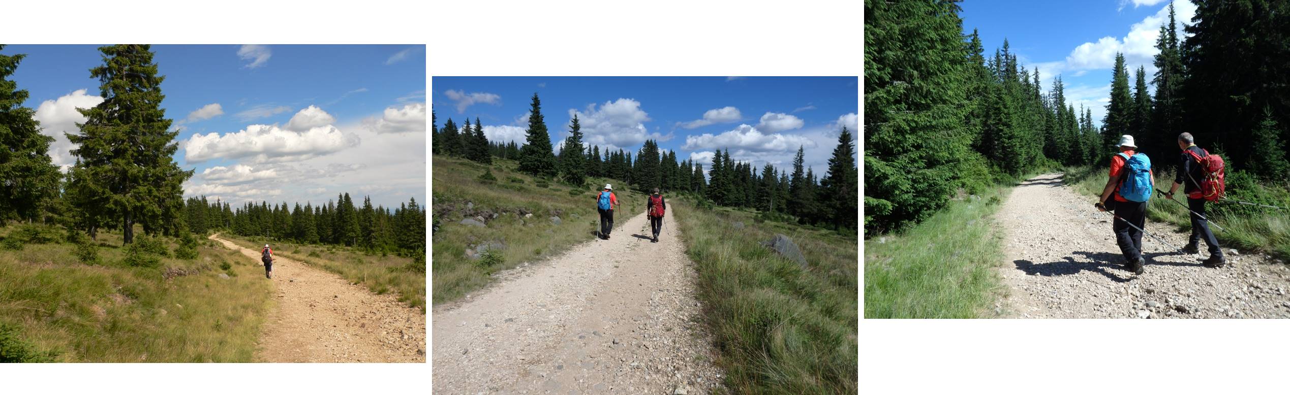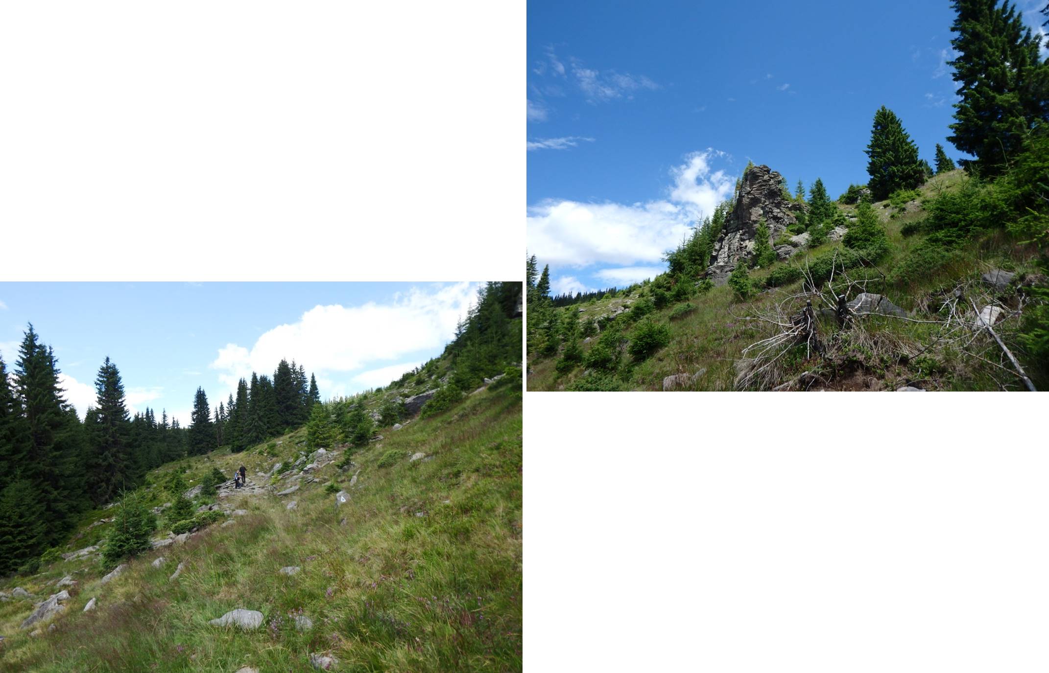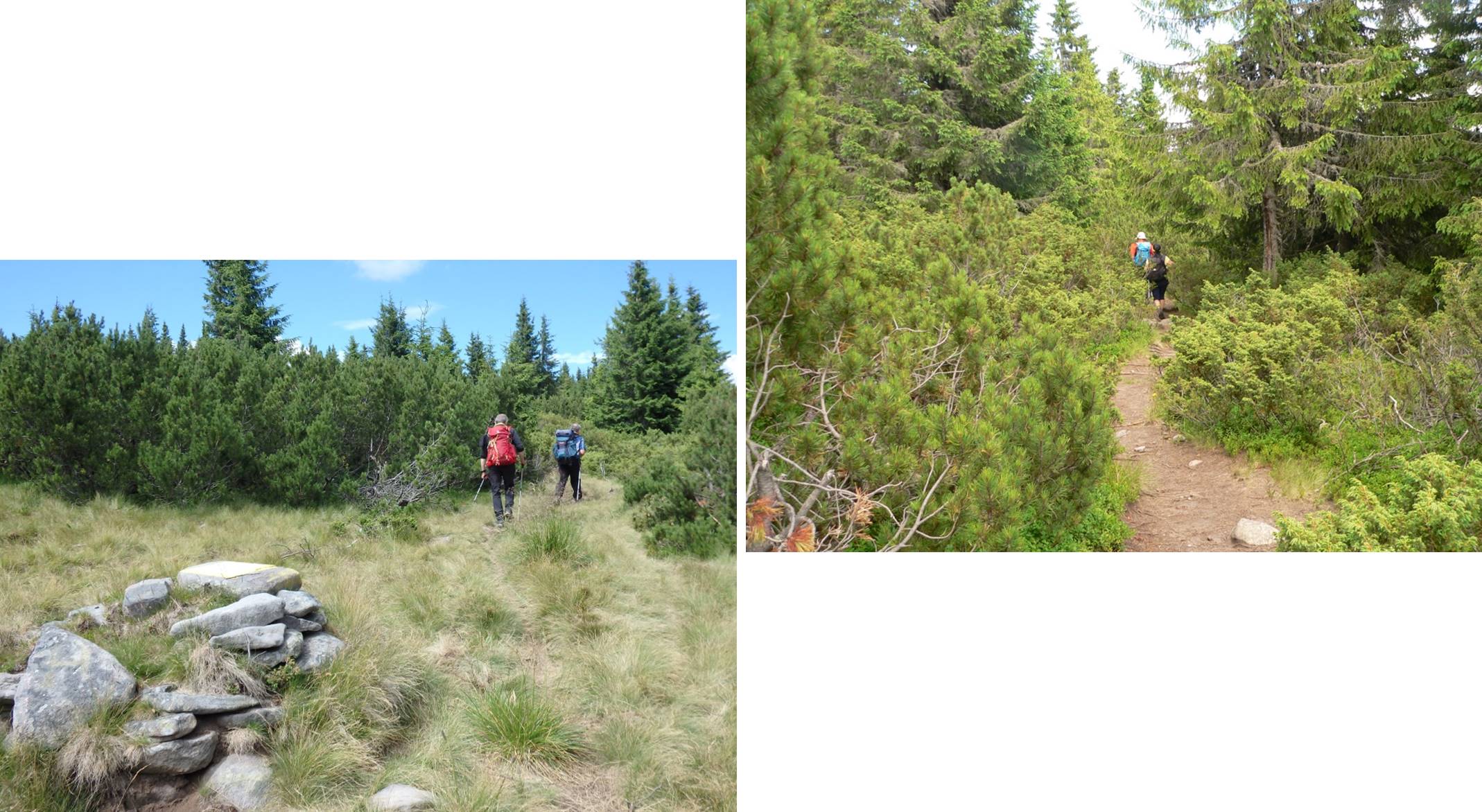 … coborâm, un timp, sub culme, spre sud-est, dar, la prima bifurcare a drumului, schimbăm direcția cu 90 de grade, pentru a prinde direcția sud a culmii Mocearului !