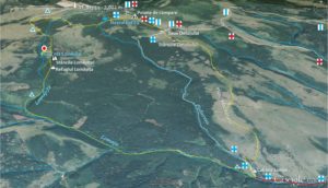 Drumul intră până la urmă în pădurea de pe coastele estice ale dealului ieșind, pentru puțin timp, pe culmea sa sudică; …