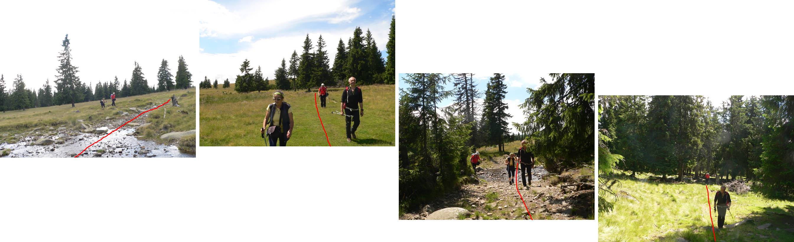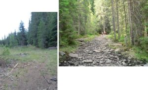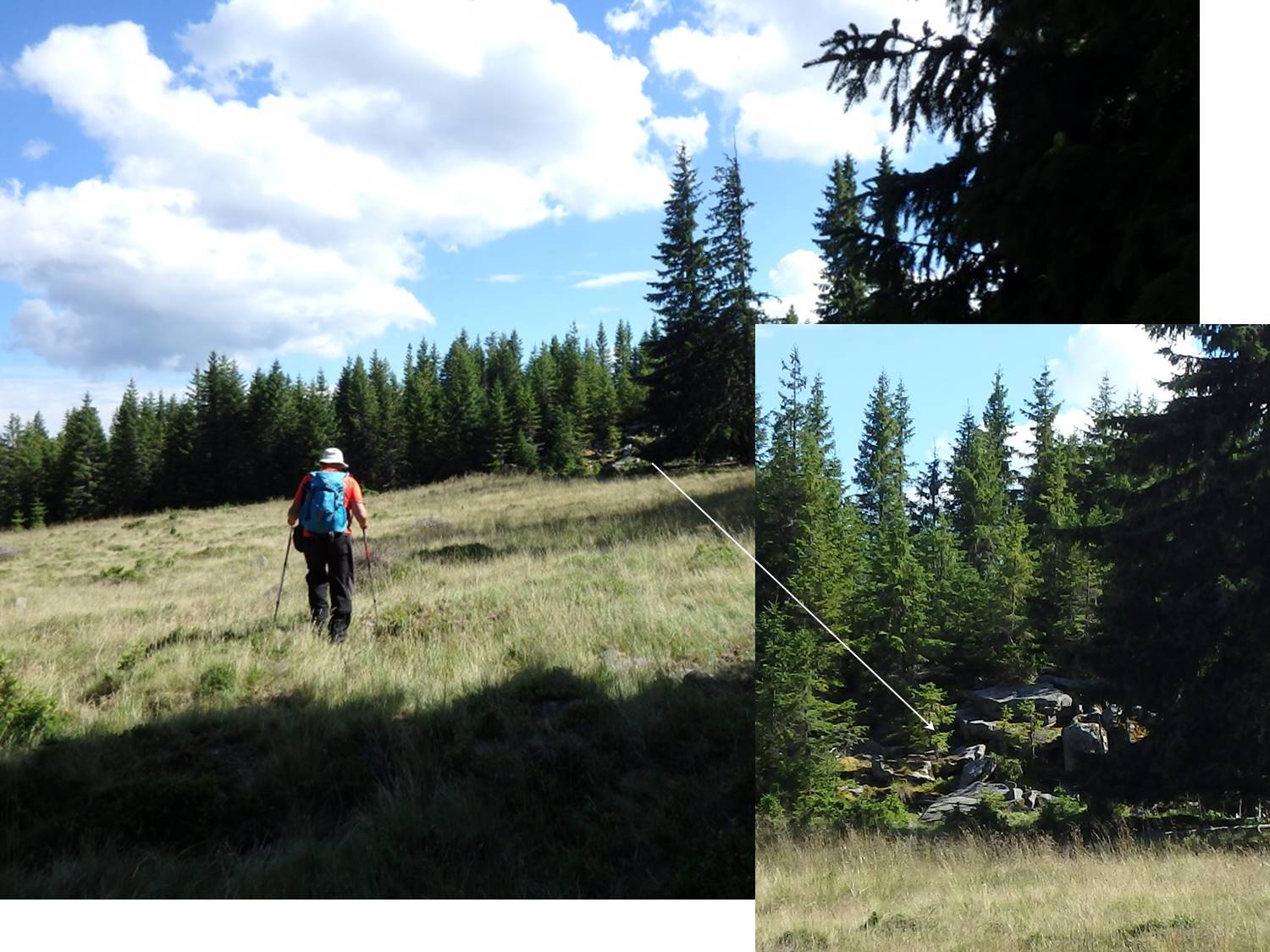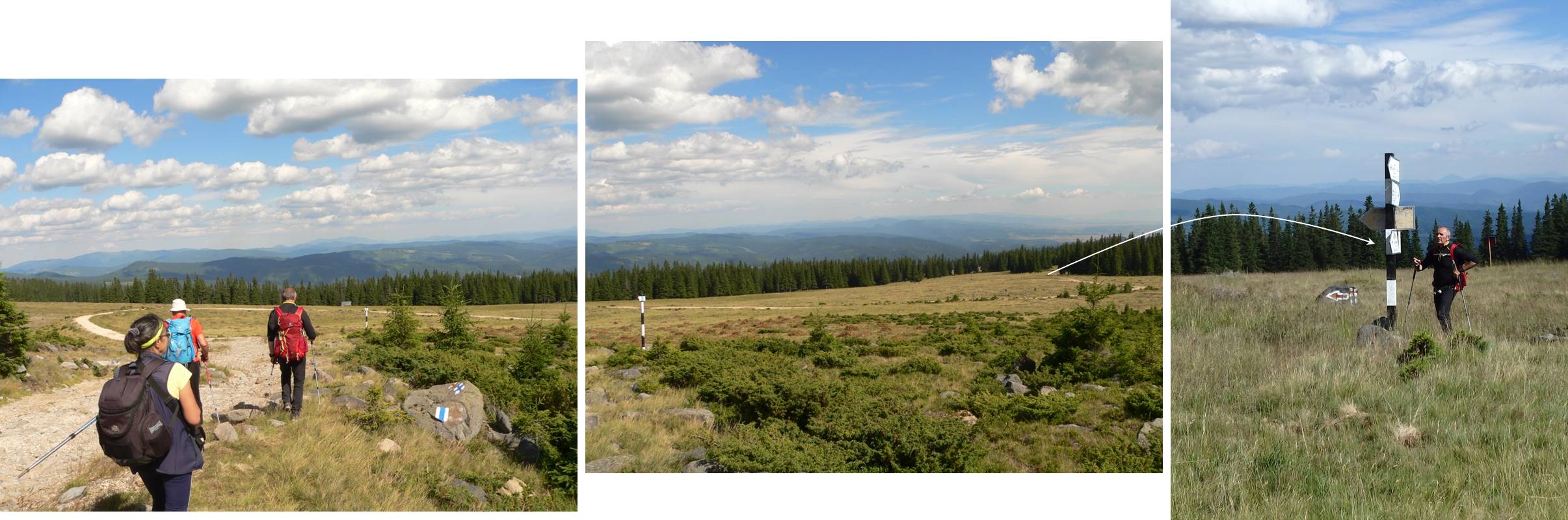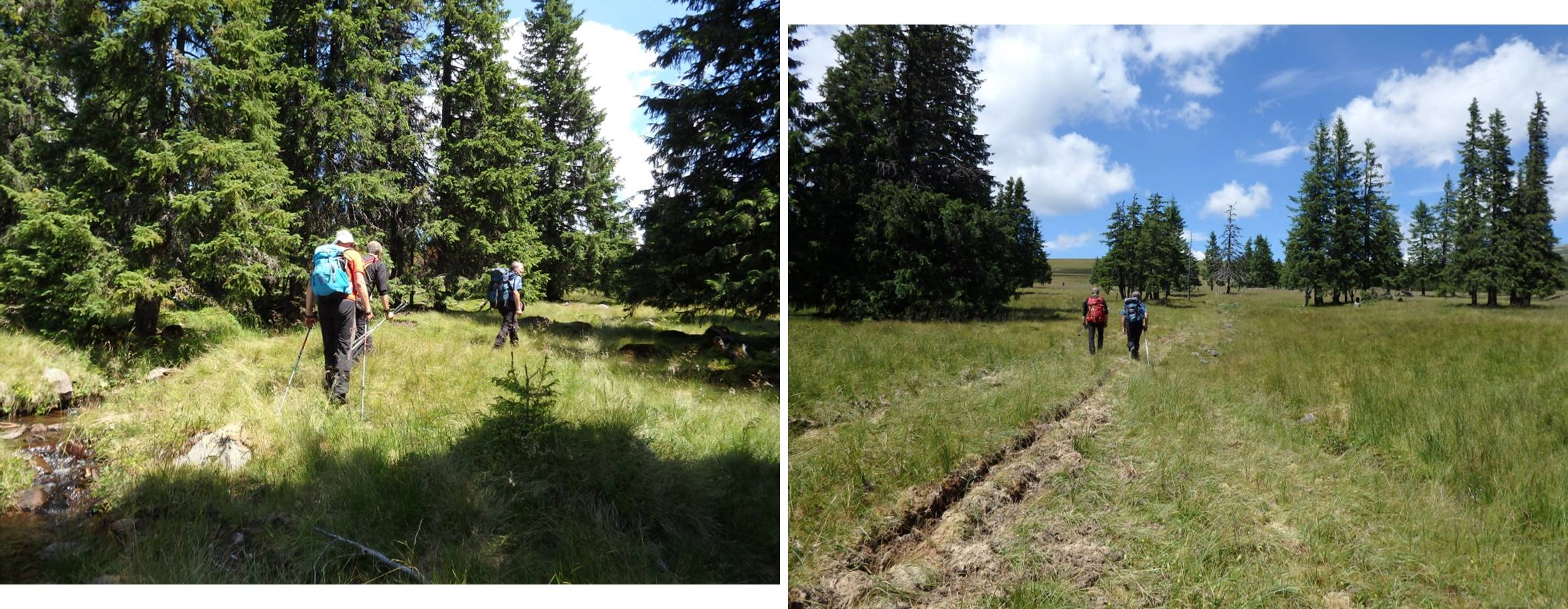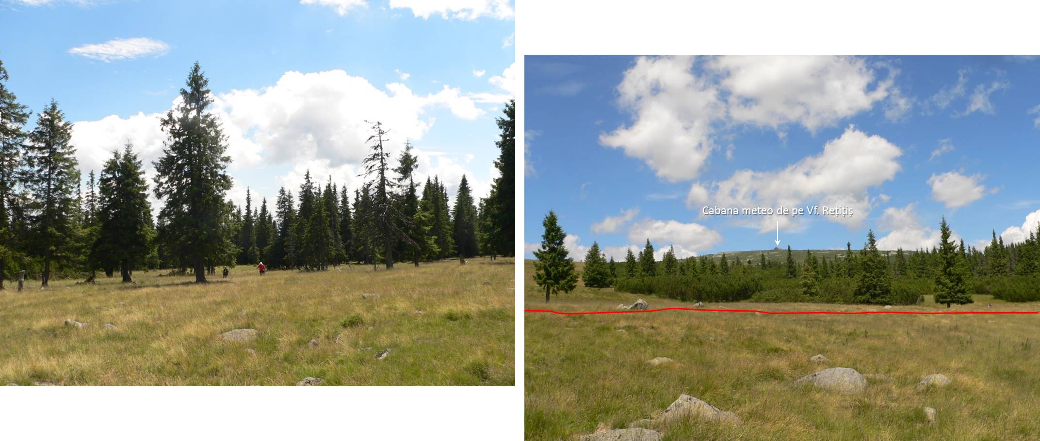 De aici părăsim marcajul – ce suie spre Vf. Rețițiș -, schimbând direcția cu 90 de grade spre dreapta, de cum întâlnim un drum de tractor, transversal pe direcția noastră (anterioară). Conform unora dintre hărțile Călimanilor ar trebui să fie marcat cu cruce galbenă; pe teren, nici vorbă (doar, pe doi bolovani, am observat urme ale unor … puncte roșii – ?) !