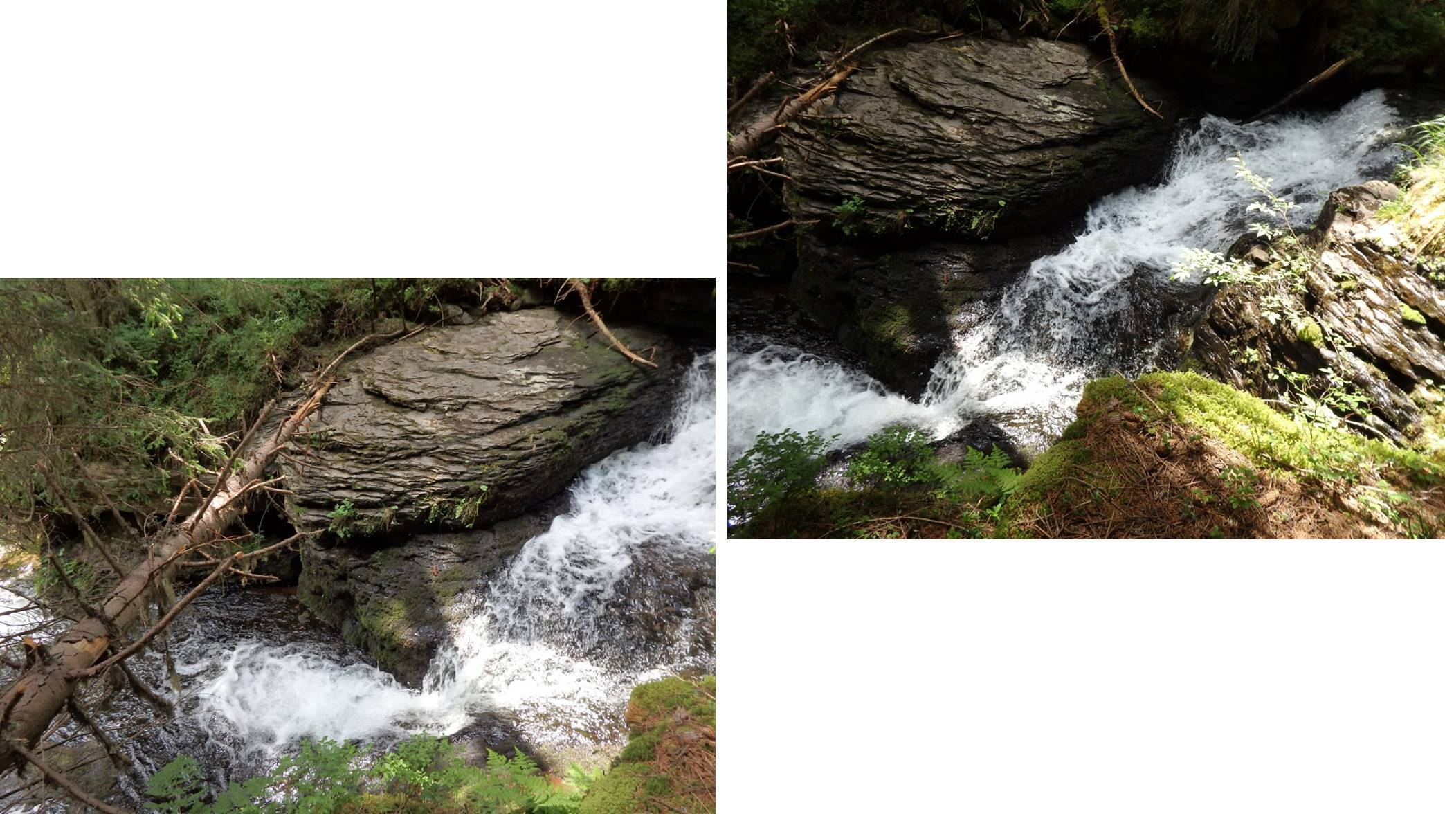 Coborâm, repede, pe un prim prag, la nivelul Lomășiței, dar deasupra cascadei, …
