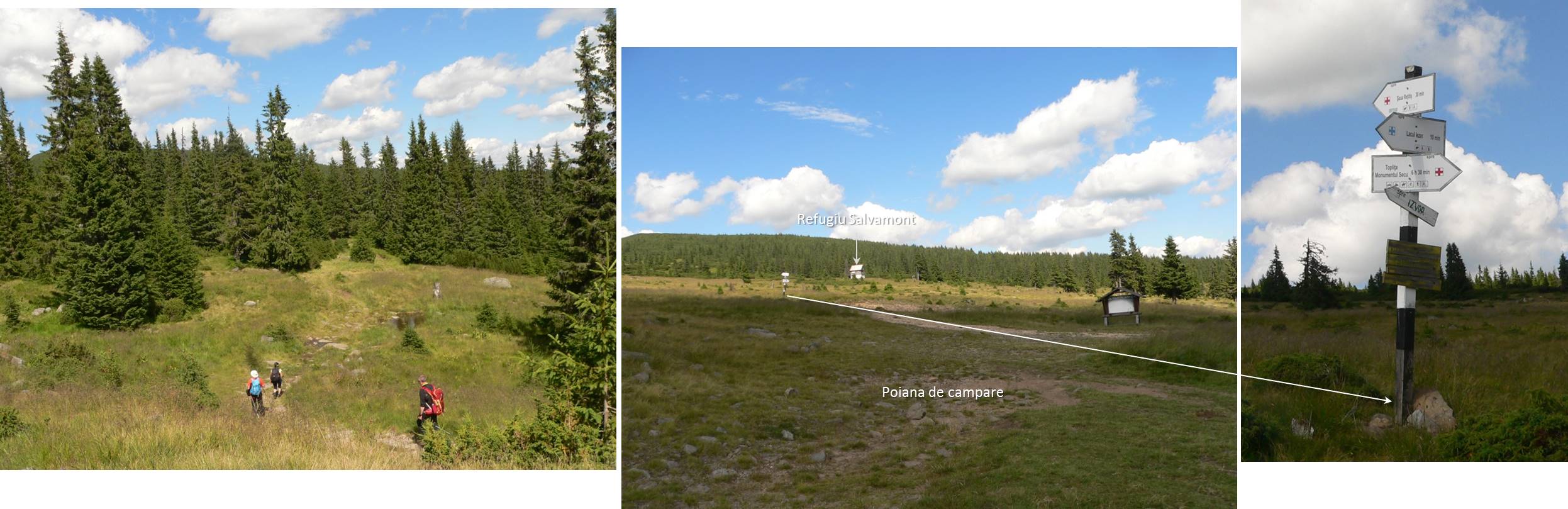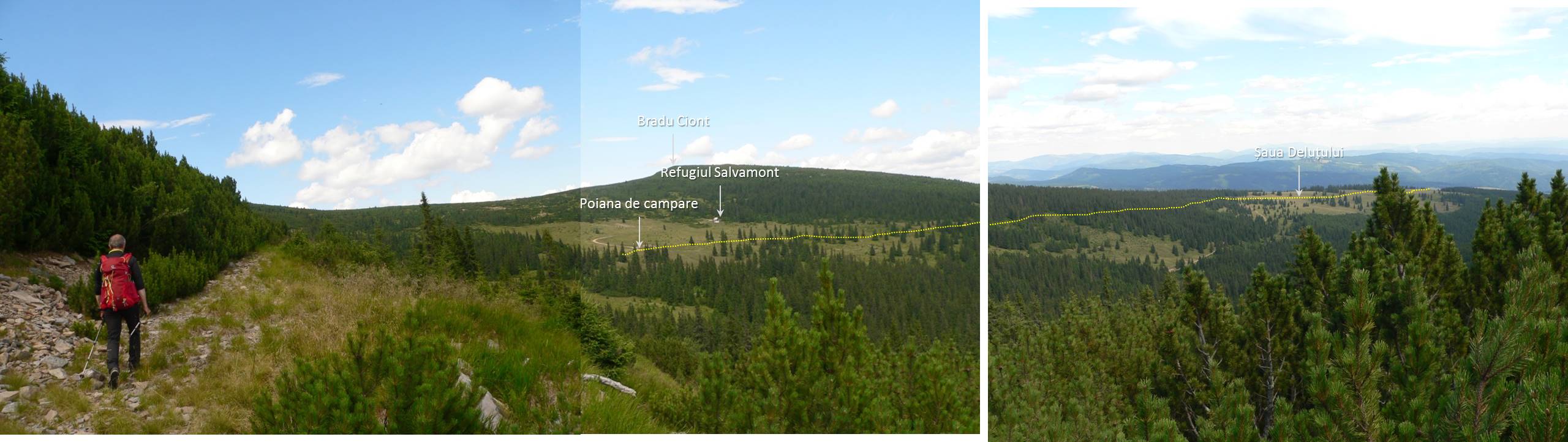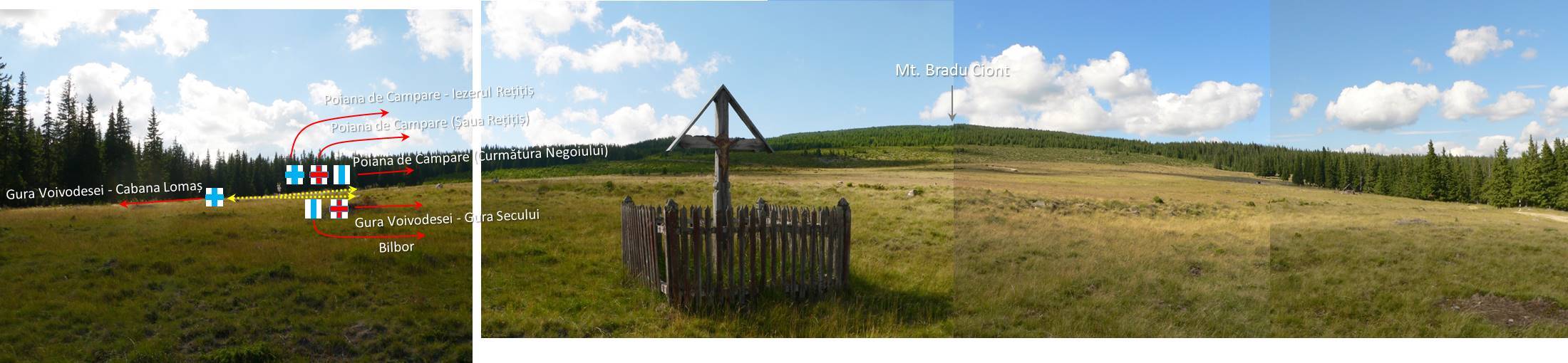 Reluăm marșul, din nou pe marcaj silvic: întâi cruce albastră, apoi, din Poiana de Campare, și cruce roșie și bandă albastră (acesta din urmă neprezent pe stâlpul cu indicatoare, dar este bine evidențiat pe teren, cel puțin pe sectorul străbătut de noi, între Șaua de Campare și Șaua Deluțului; teoretic – pe hărți -, unește Bilborul cu Cabana/satul Gălăoaia de pe Mureș, dar, cel puțin pe porțiunea Curmătura Negoiului – Curmătura Măierișului, lipsește).