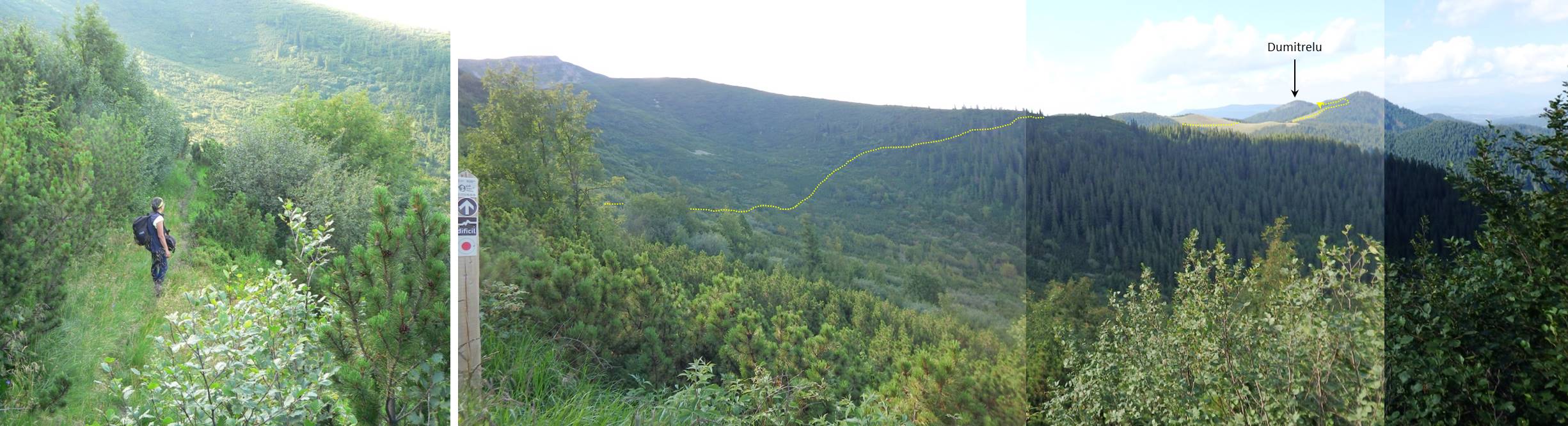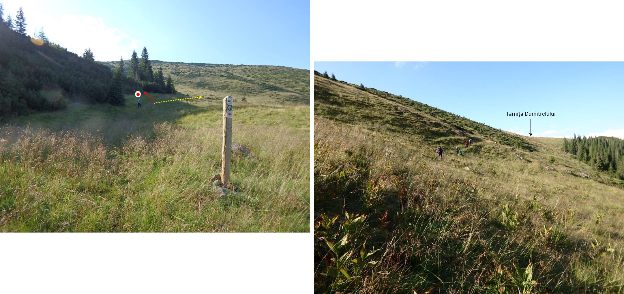 De aici părăsim “punctul roșu”, luînd-o spre plaiurile Dumitrelului pe poteci pastorale; …