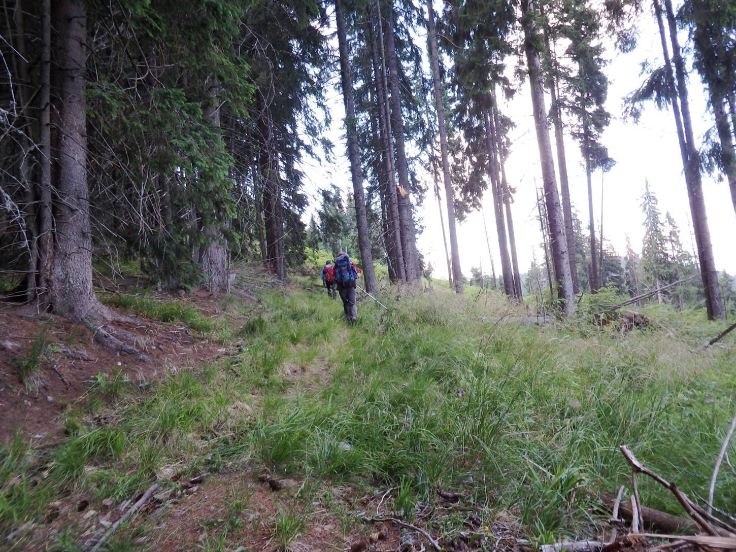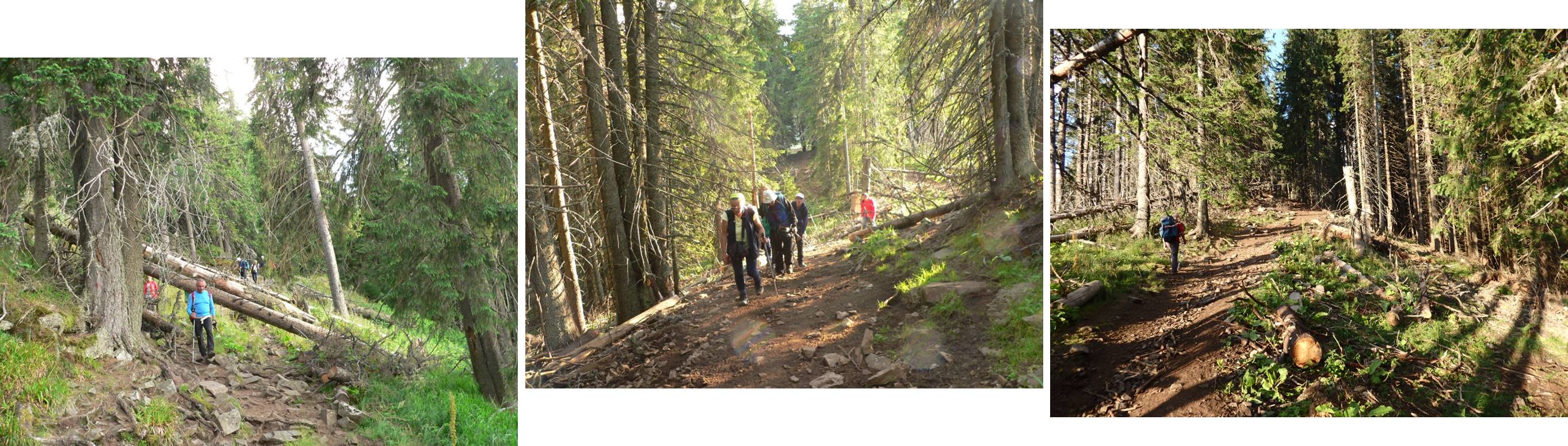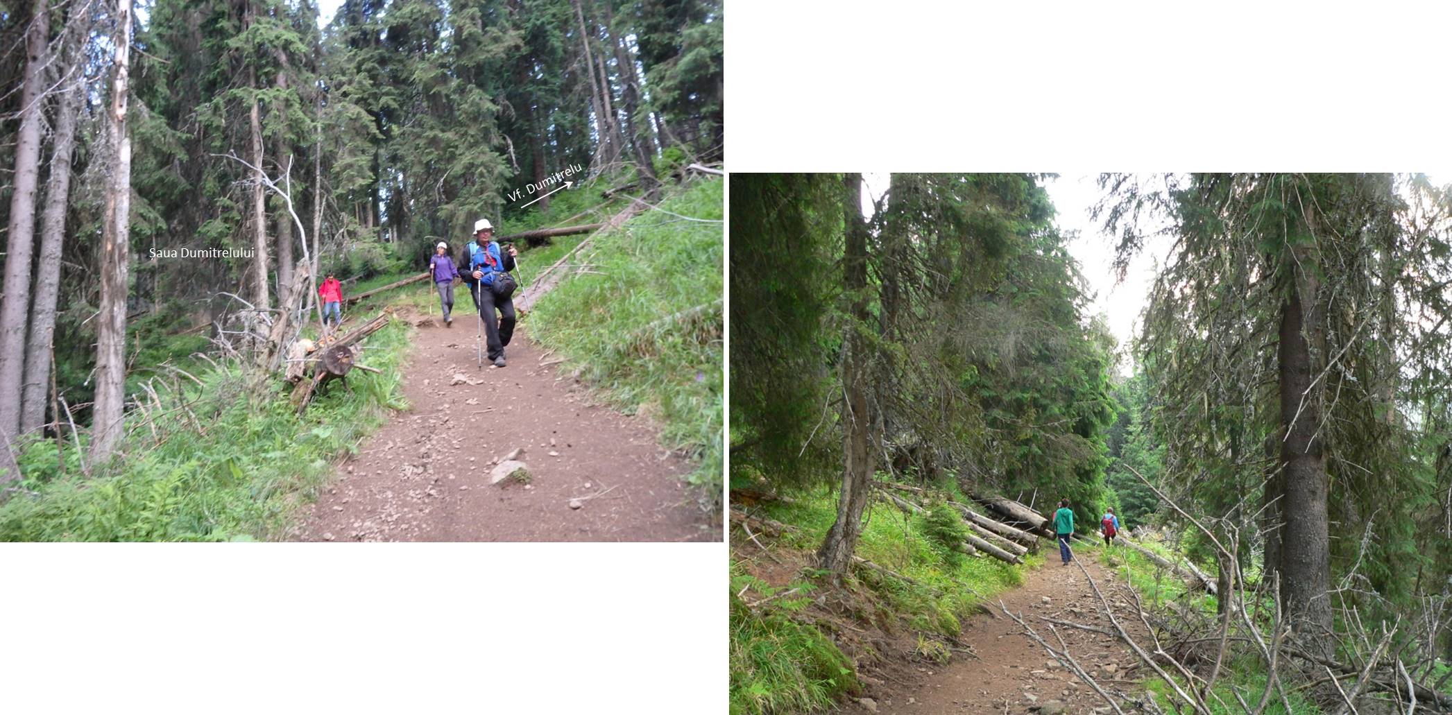 … până intrăm în pădure; apoi, mai mult de-a coasta, în arc pe sub culme, spre Vf. Dumitrelu !