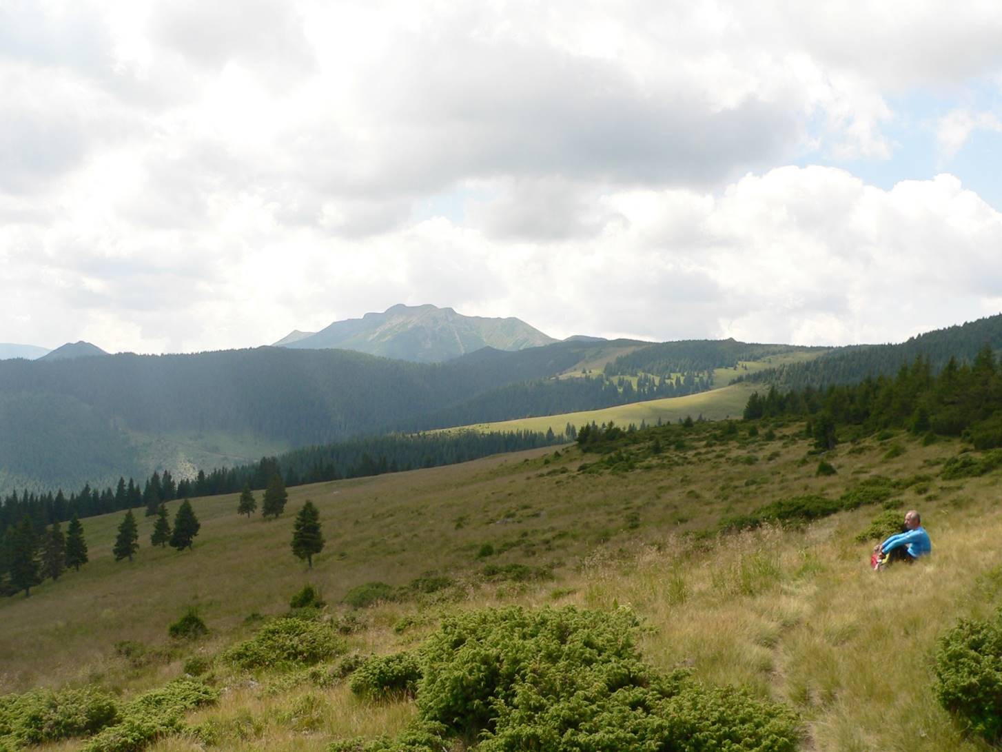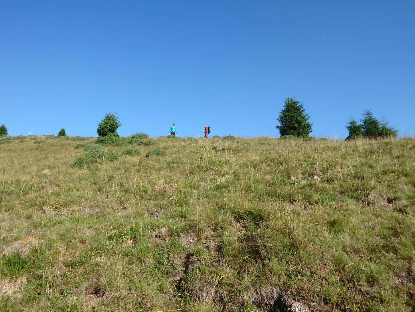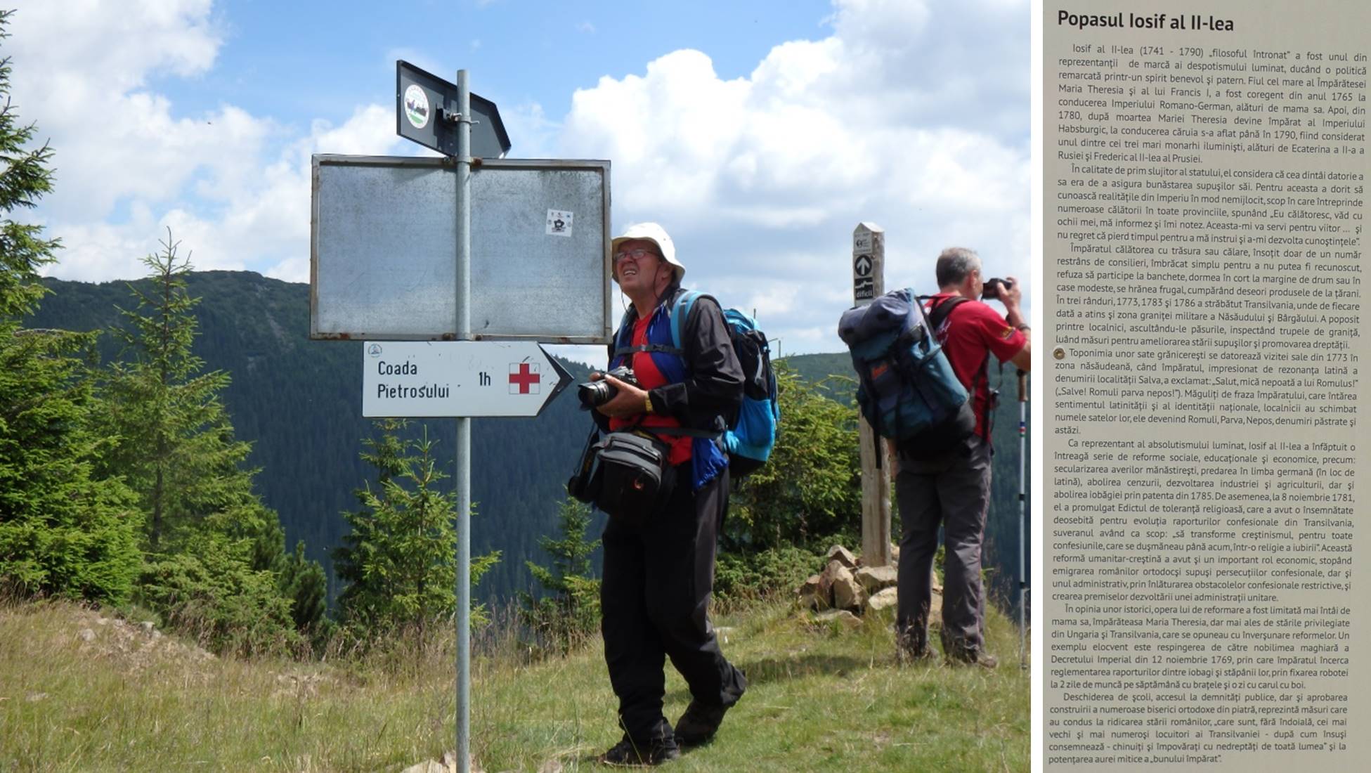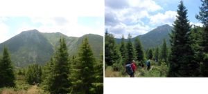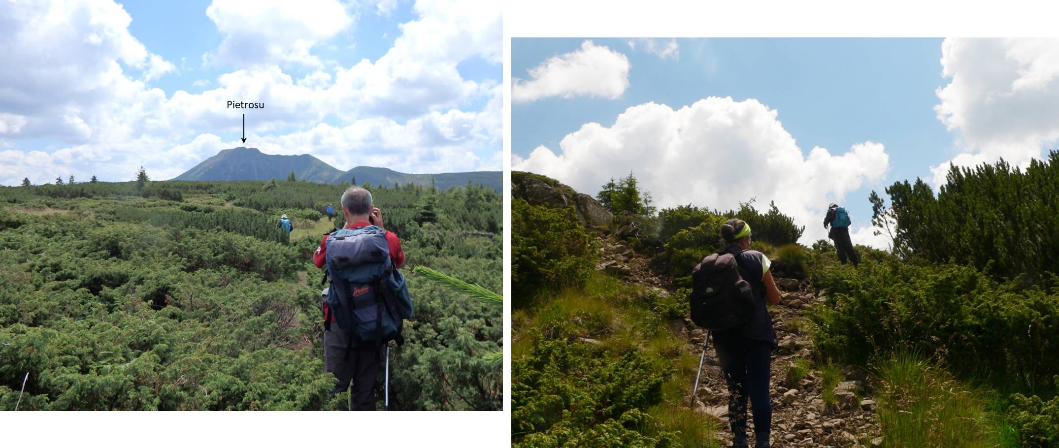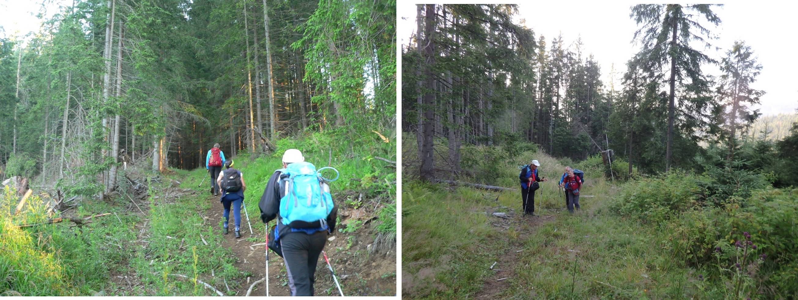 Urcușul spre Vf. Pietrosu începe cu o scurtă plimbare pe <Drumul Mariei Tereza>. Ni s-a atașat o familie de prin Botoșani ajunsă la Popasul Iosif al II-lea pe traseul Gura Haitii – Poiana Izvoare (cruce roșie).