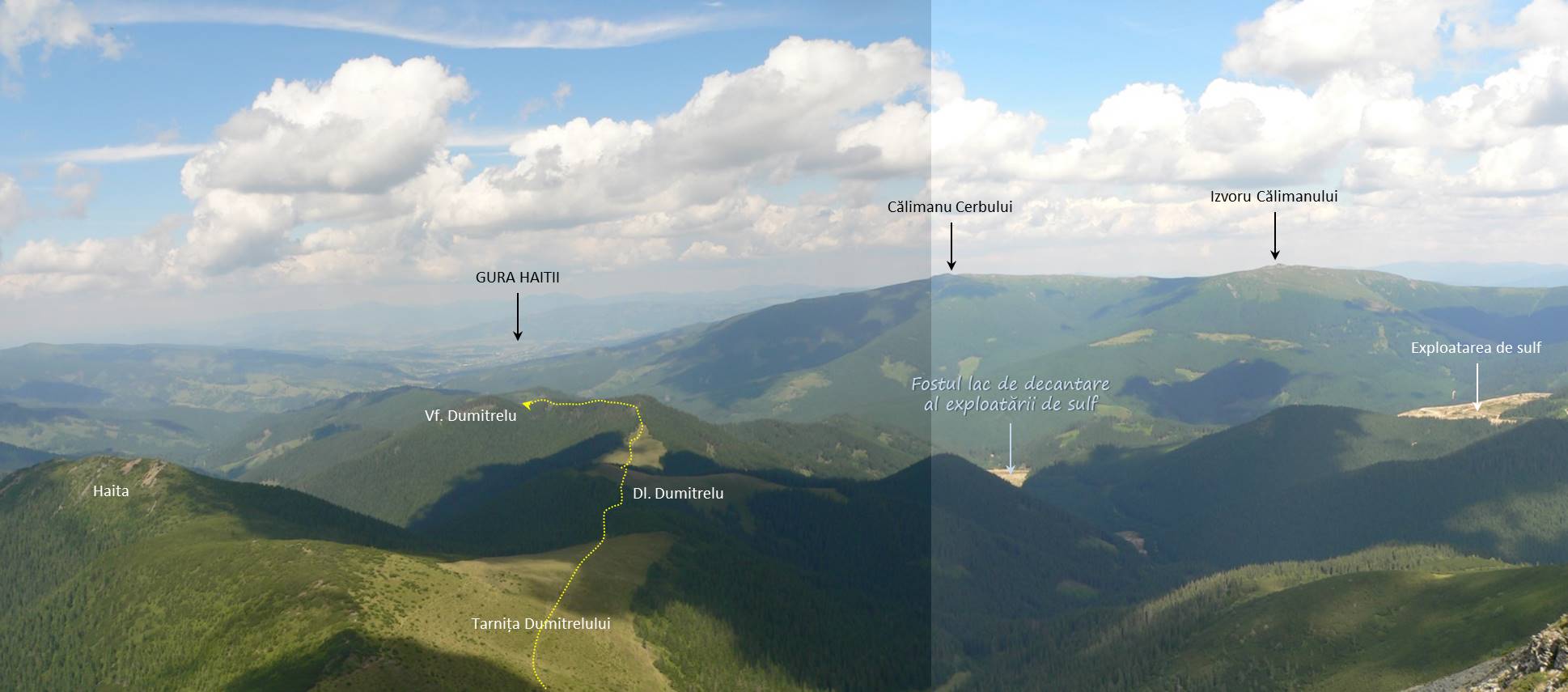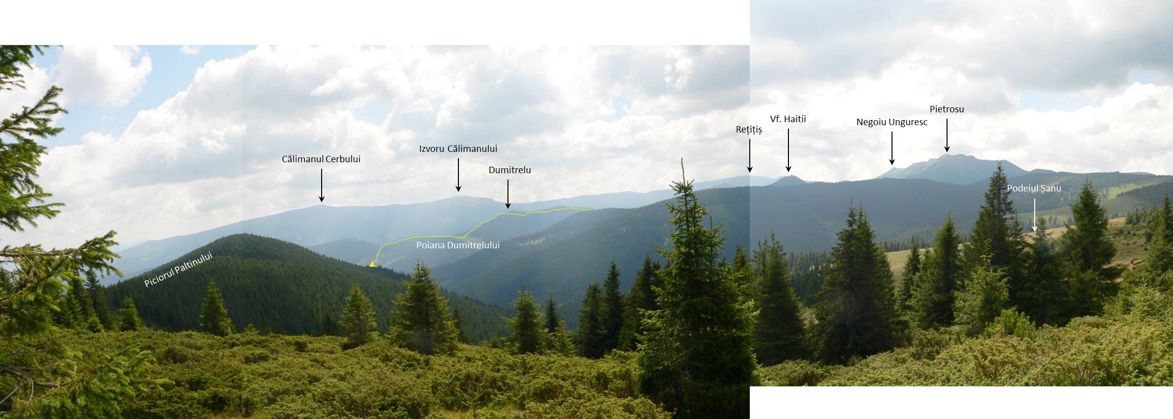 Descrierea continuării traseului – coborârea spre Negoiu Unguresc, accesarea Culmii Dumitrelului de pe Drumul Mariei Tereza și coborârea finală pe valea Haitii -, ca și o addendă cu ceva considerații privind toponimia Călimanilor pot fi accesate aici !