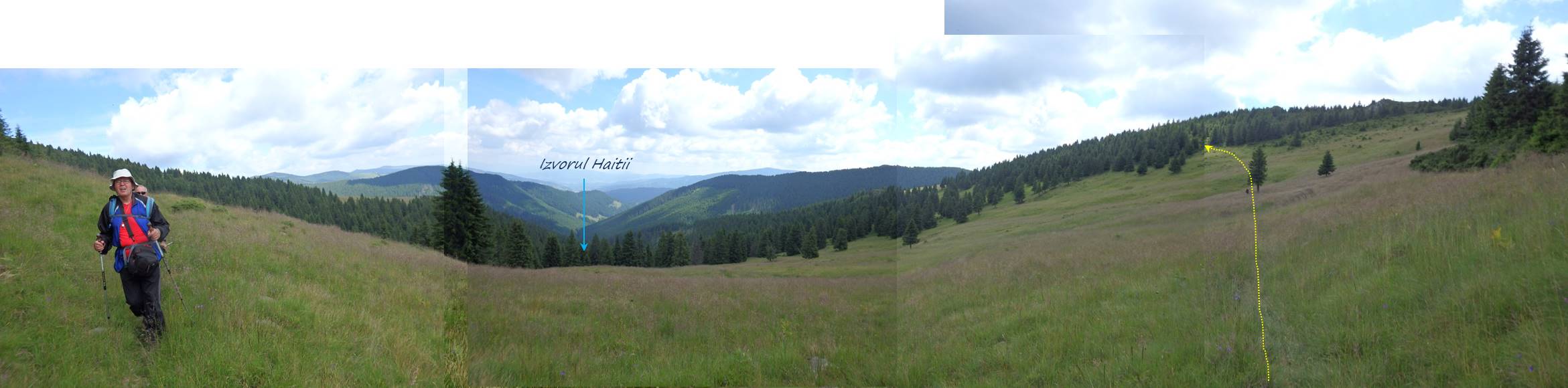 6:15 – La gura Panacului/Tăieturii, ultimul afluent de stânga al Haitii (ar mai fi un pârâiaș insignifiant) înainte de confluența cu Șaru Negrei, la cca 1 km de aceasta; aici e acum punctul de intrare în traseele “cruce roșie”, “punct albastru” – numit și “Poteca 12 Apostoli” – și “cruce albastră” !
