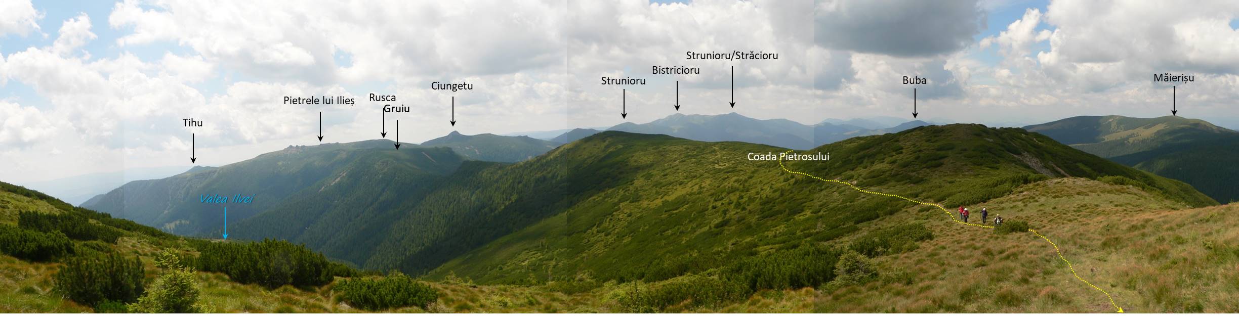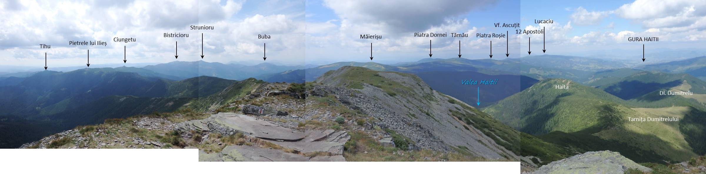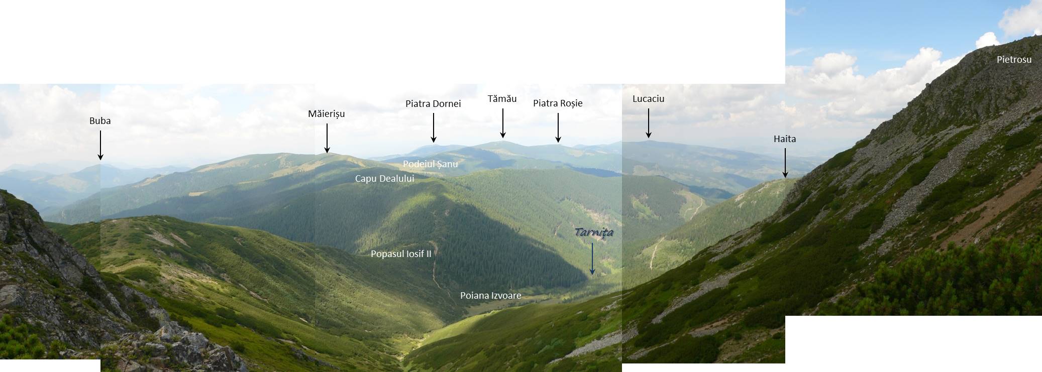Ziua 2: Pensiunea Poarta Călimanilor – Gura Panacului (DJ 174F & DF – acceptabil, 4) – Piciorul Tăieturii – Vf. Pietrele Roșii – Vf. Tămău – Vf. Pietrosu – Gura Panacului – Pensiunea Poarta Călimanilor