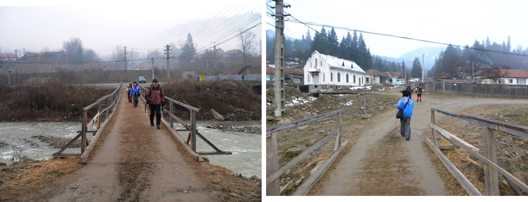Ieșim din sat pe puntea ce ne scoate la … drumul mare ! O altă variantă ar fi fost să continuăm prin sat, pe malul dreprt al Trotușului, pe care să-l traversăm pe unul dintre cele două poduri de la gura Grohotului !