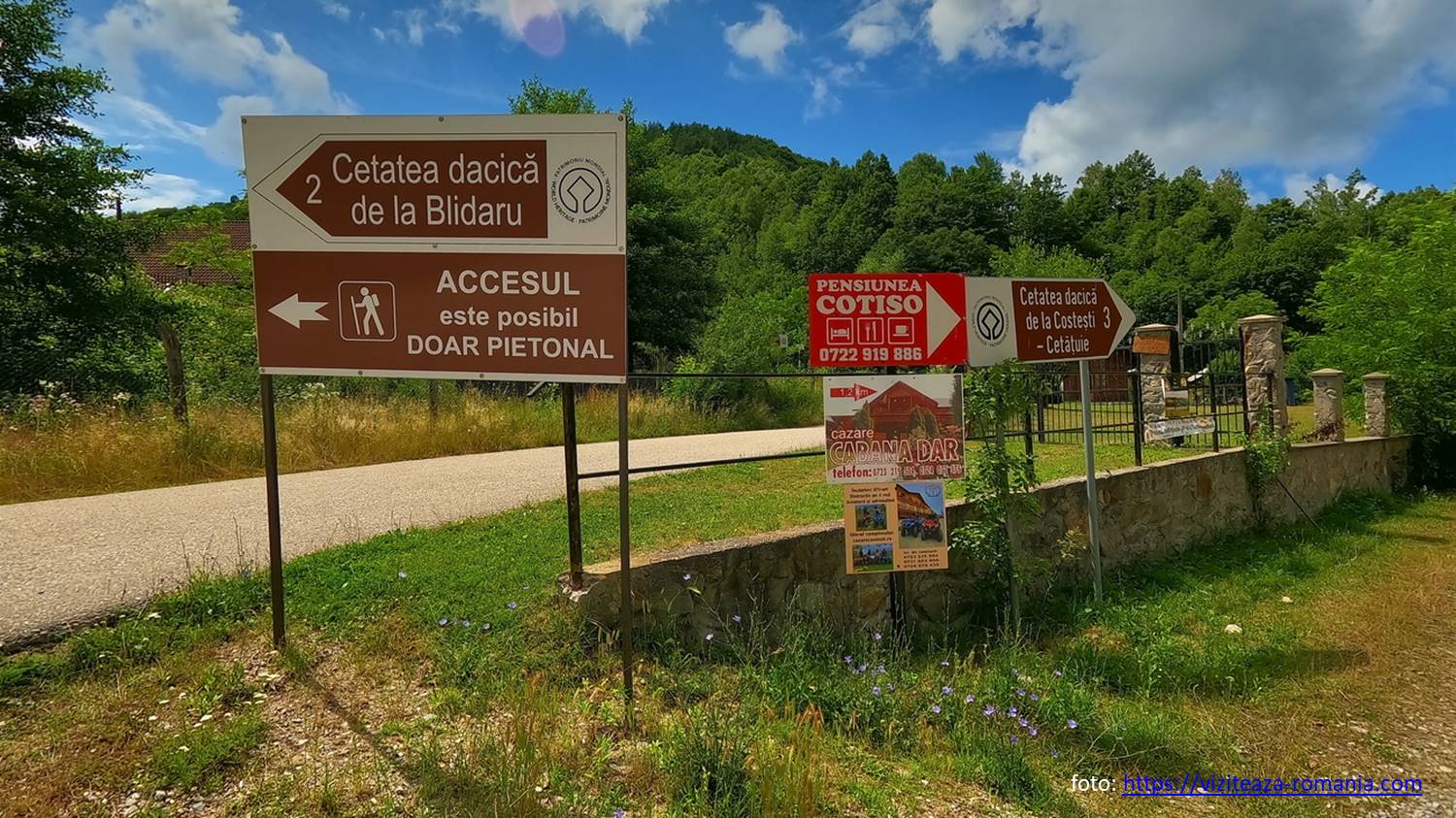 Cum spuneam, accesul la cetățile Cetățuie și Blidaru se face de la ieșirea (sudică) din Costești, marcată de trecerea pe sub o poartă alegorică, dincolo de care cotim spre dreapta, traversăm Grădiștea și parcăm …