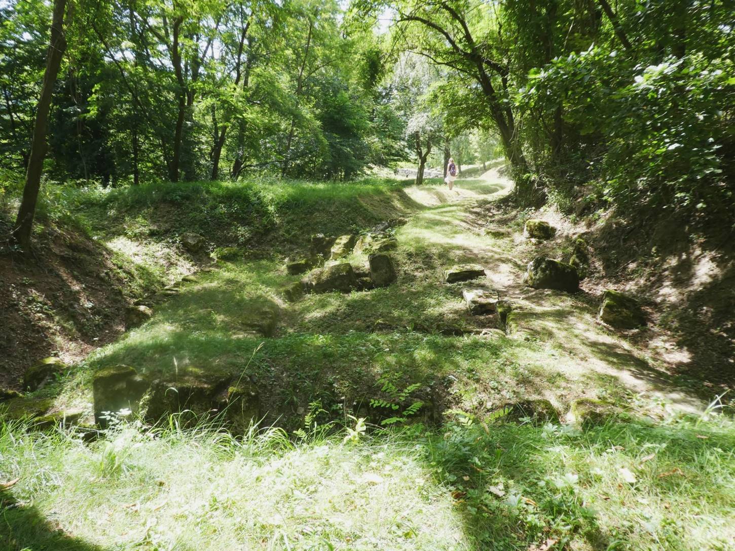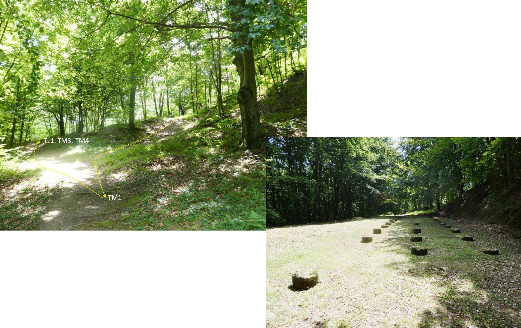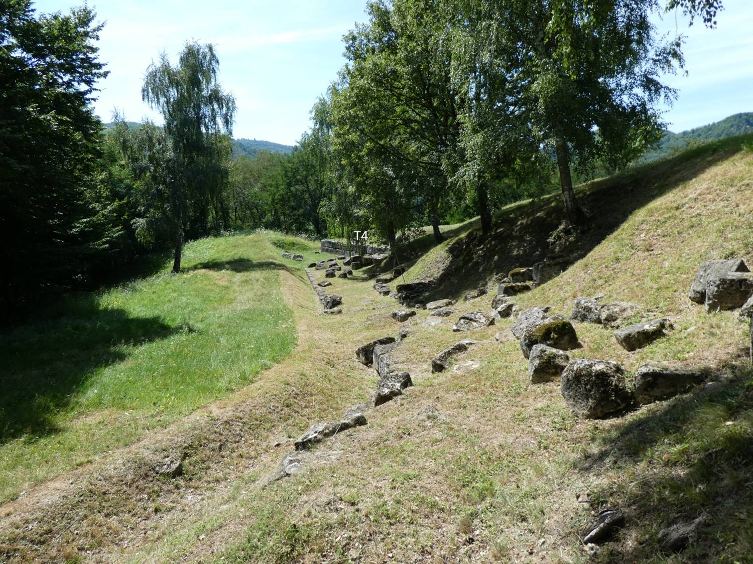 la templul 2 din care – precum din toate celelalte – n-au rămas decât plintele de piatră pe care erau înălțați – în urmă cu 2.000 de ani – stâlpi de lemn. De aici ne întoarcem la turnul 4 …