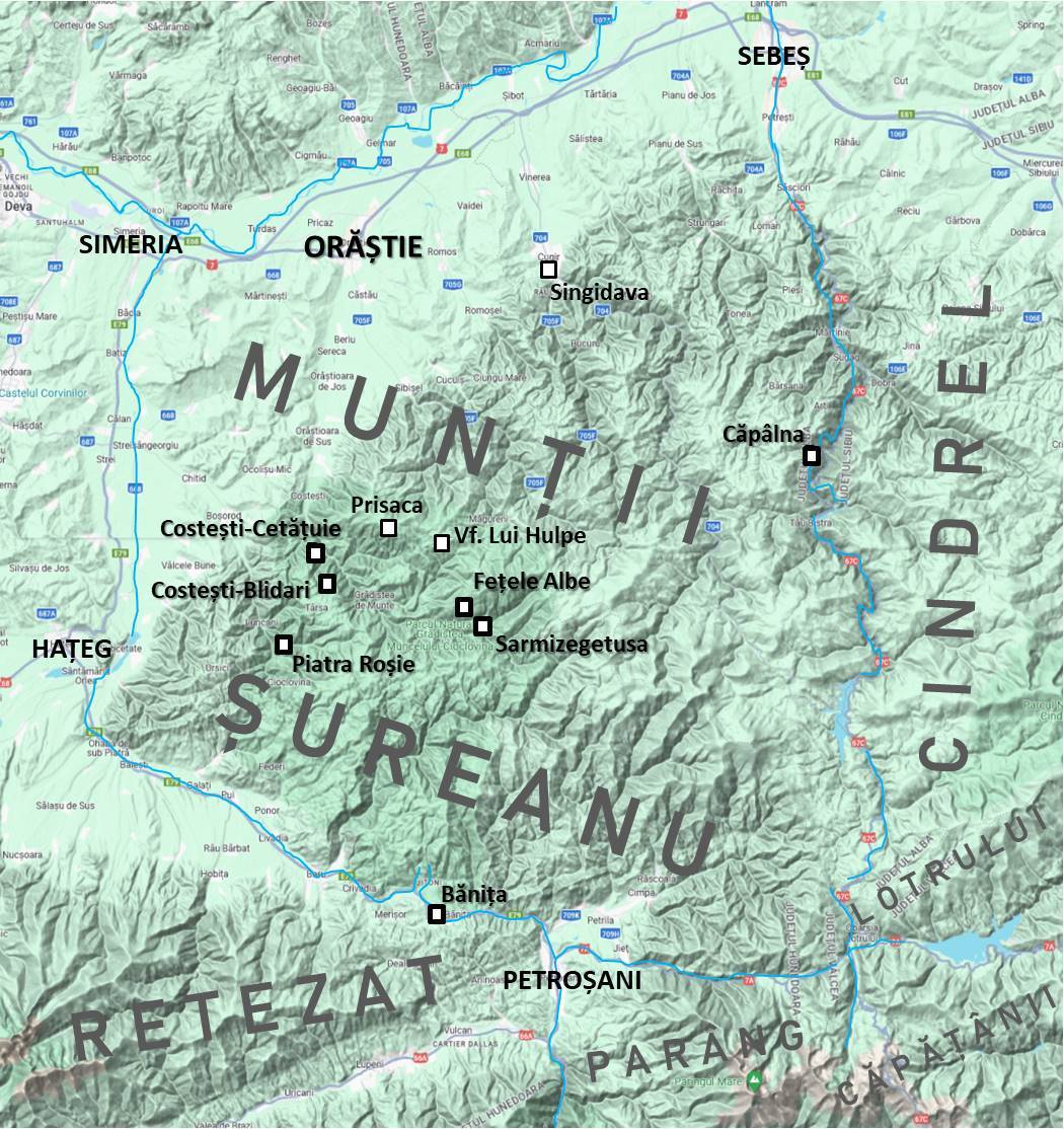 Trebuie să mai menționăm că subsintagma “Munții Orăștiei” este de natură nu atât geografică, cât … arheologică, necorespunzându-i o încadrare clară, morfologico-geografică, în spațiul ocupat de Munții Șureanu, de care țin zonele unde se află cetățile dacice și de care oronimul în cauză este legat organic și semantic.