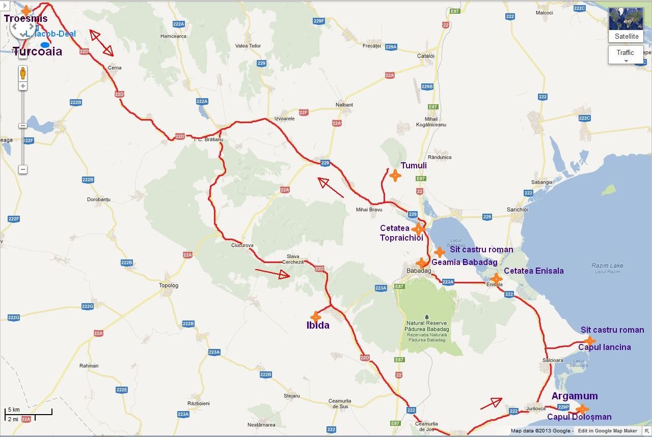 Ziua 2 (12 mai): Turcoaia – Cetatea Ibida – Capul Doloșman (Cetatea Argamum) – Jurilovca – Capul Iancina (sit-castru roman) – Cetatea Enisala – Babadag (geamia, sit-castru roman) – Cetatea Topraichioi – Satu Nou (tumuli) [- Măcin – Brăila – Focșani – Onești]