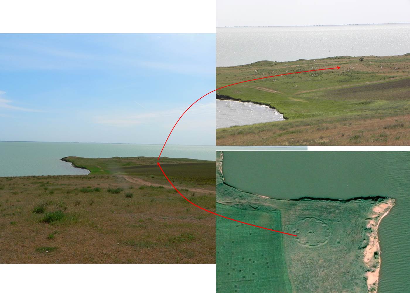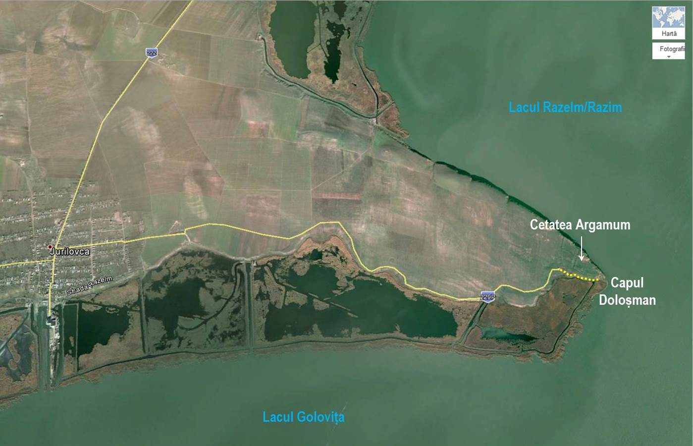 … pe malul Razelmului, la Capul Iancina, unde ar trebui să vedem (?) urmele unui turn de apărare romano-bizantin ce ar fi ținut de un sistem de fortificații antic construit pe malul Lacului Razelm între cetățile Argamum și Enisala. Amprenta pe sol a turnului e vizibilă doar din satelit !